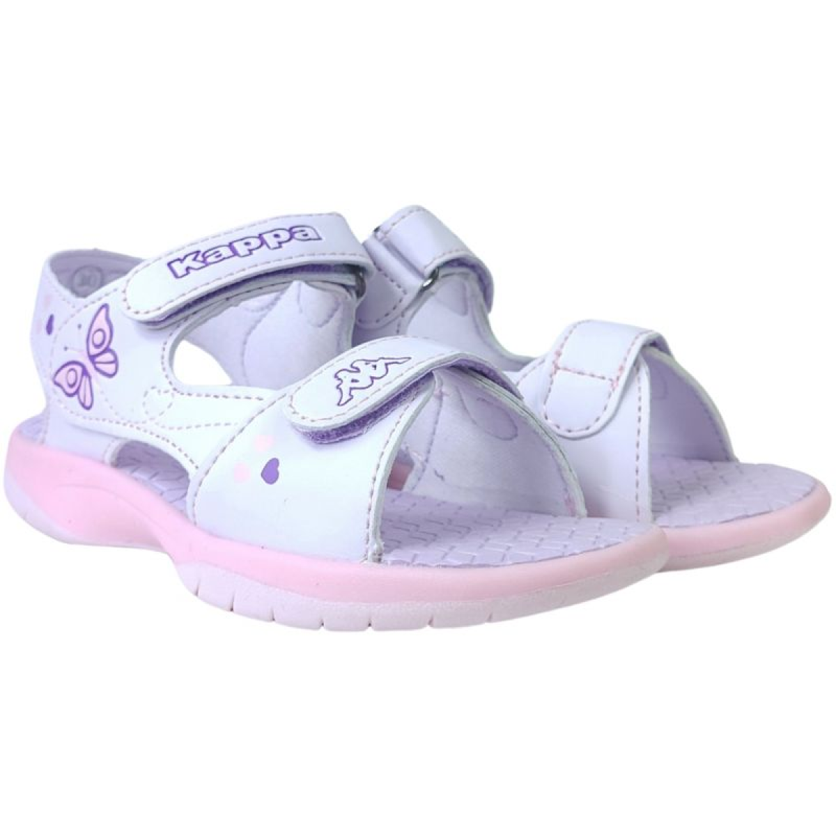 Kappa sandals for children are perfect for everyday use. Two straps fastened with Velcro allow for a very good fit. Upper made of synthetic material. Embossed insole with a heart pattern.