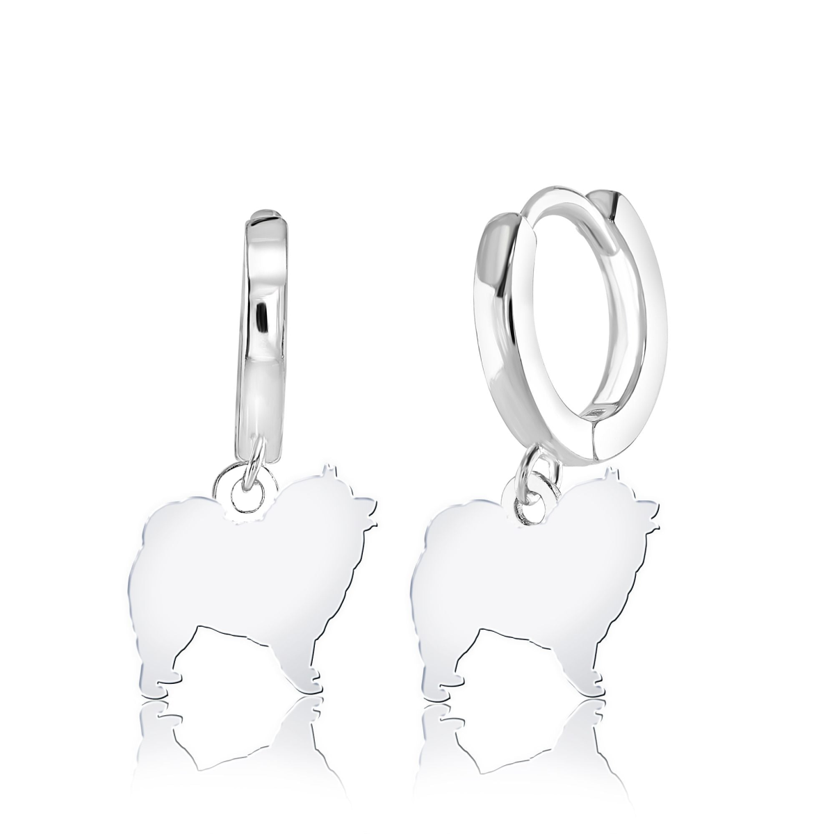 Keeshond Silhouette Silver Earrings