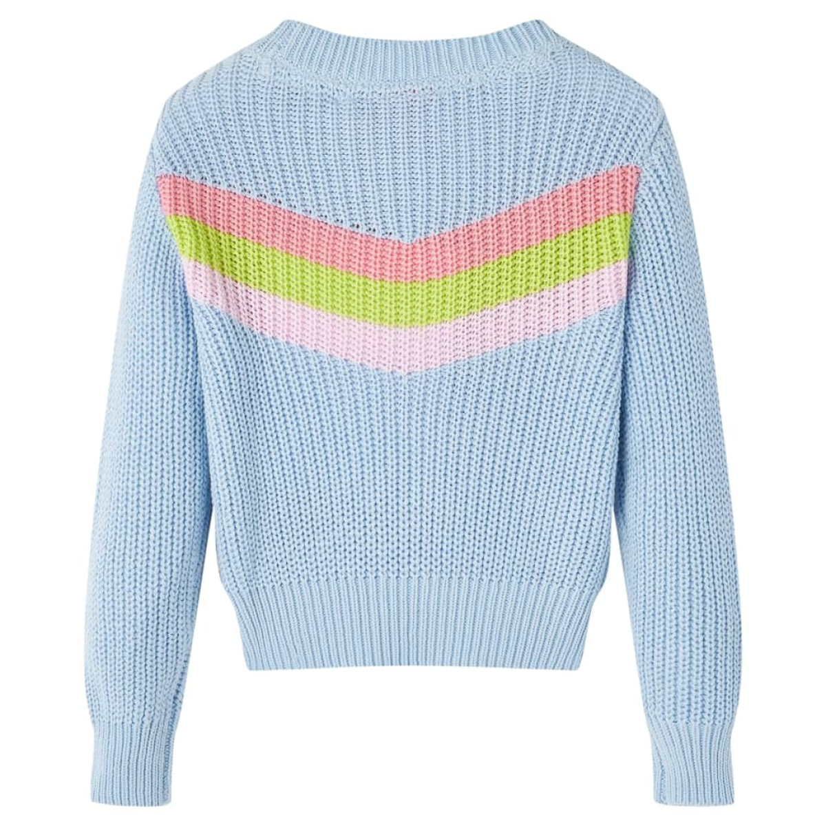 Our children's clothing line is all about affordable, high-quality, and durable everyday wear for kids aged 1.5 to 10. Our range includes jackets, sweaters, shirts, and many more, with a variety in style, size, and colour. Following the high quality standard in the market, we are using high-grade materials and advanced manufacturing techniques. This kids' sweater has long sleeves, a crew neck, and a straight fit. The children's sweater has colourful V-shaped patterns. The kid's pullover is made of 100% cotton with a rib knit, ensuring extra warmth and comfort. Good to know: This size chart in the picture provides measurements for kids aged 1.5 to 10, covering the height, chest, waist, and hip. You can easily find the right fit for your child.