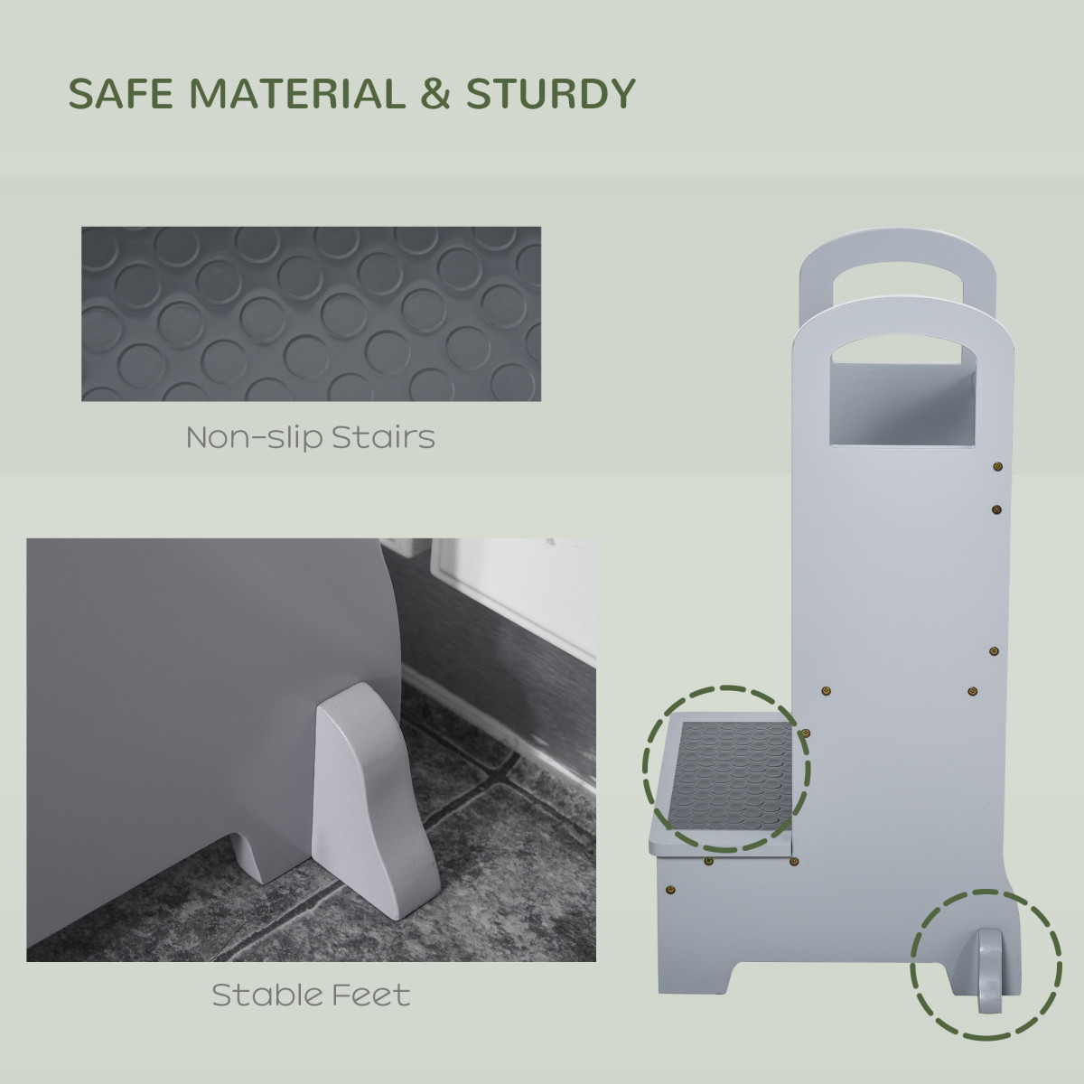 Kids Wooden 2-Step Stool Mini Ladder Assistance Unit w/ Non-Slip Panels Grey