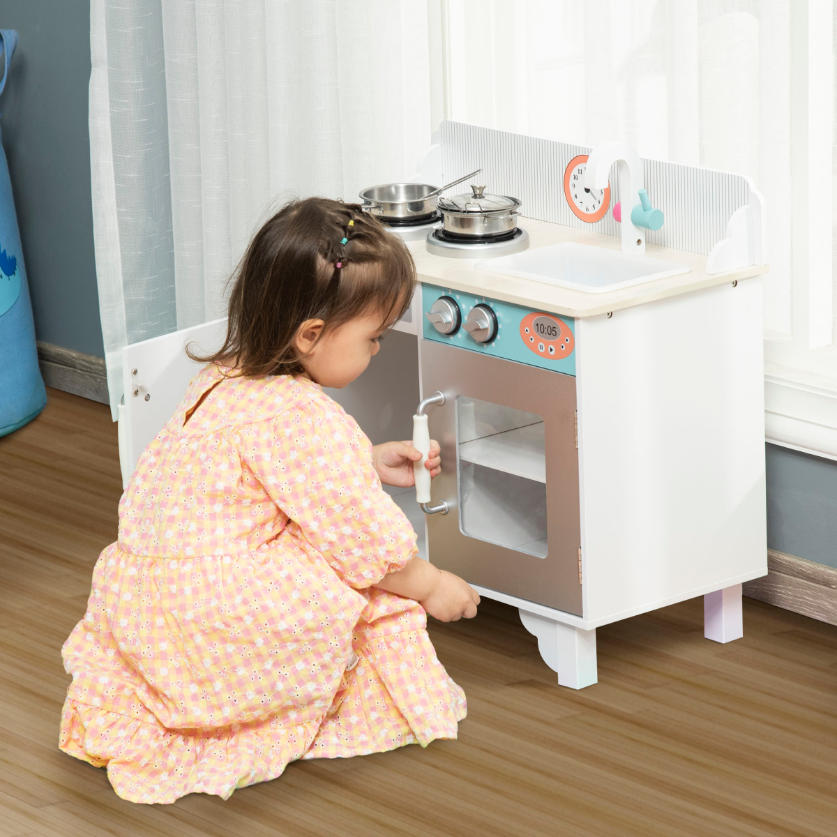 Kids Wooden Toy Kitchen Pretend Playset with Sink Faucet Pot