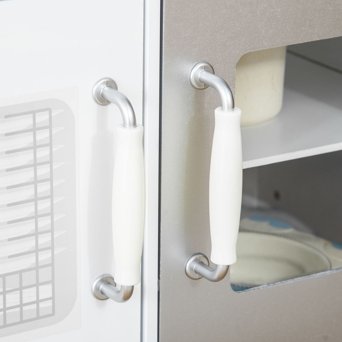 Full Kids Playset: A cute mini kitchen includes a sink, cooking bench, stainless pots and more.Realistic Design: Turn the faucet and the dials for a lifelike experience. The cabinets can be used for storage, keeping toys and accessories stored when playtime is over.Highly Educational: This wood play kitchen lets kids develop their intelligence, exercise their hand-eye coordination, use their imagination and creativity while experiencing the fun of games.Sturdy: MDF formation, durable and easy to clean. All surfaces are rounded and smooth to help prevent accidents.Kids Playset Dimensions: Overall Dimensions: 57L x 28W x 55H cm. Certification age: 3+ years. Suitable for kids ages of 3-6 years old. Certification: EN71-1-2-3.