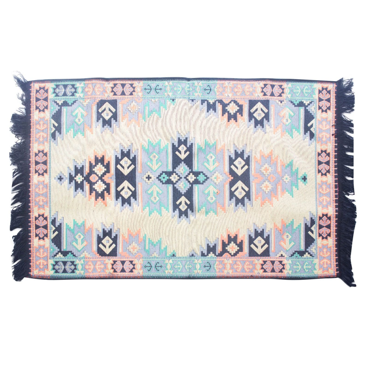 Featuring traditional kilim patterns and rich colours, this rug is a versatile addition to living rooms, bedrooms, or hallways. Lightweight and easy to place, it complements both modern and classic interiors while adding texture and visual interest.