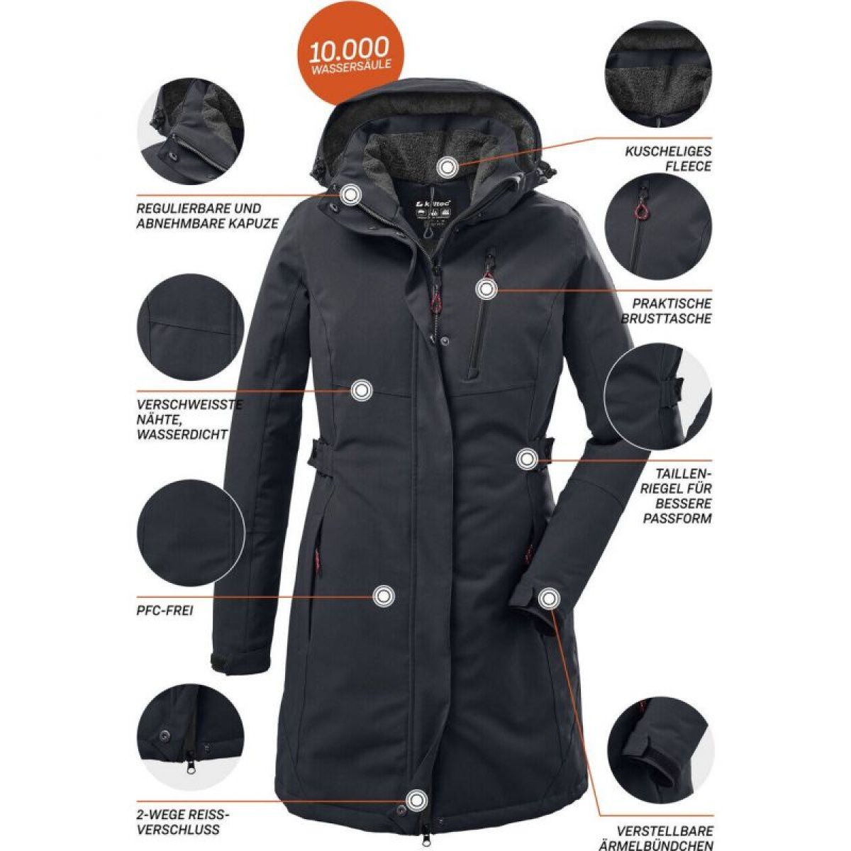 Killtec KOW 165 36 Women's Hooded Parka, Black, Waterproof, Windproof (37726/200)