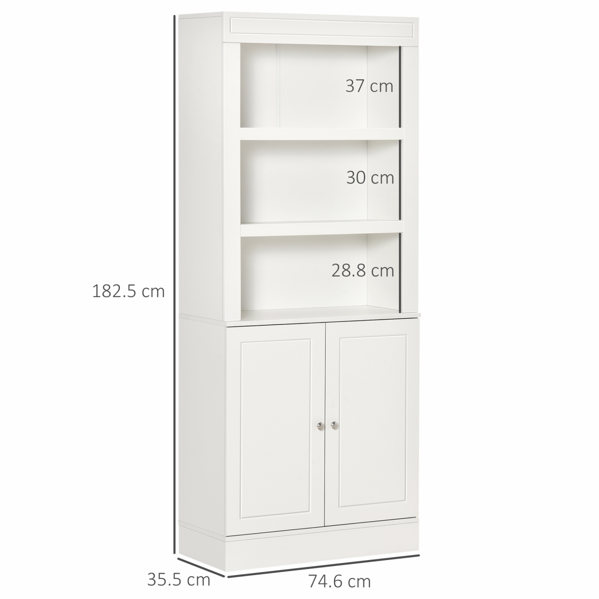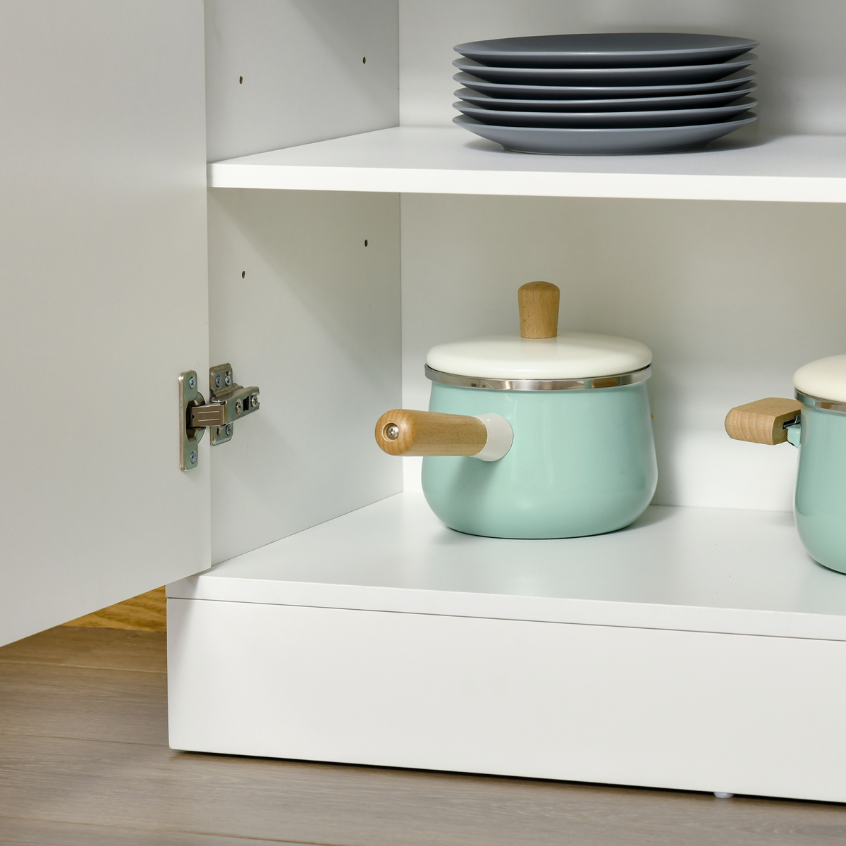 Kitchen Cupboard with 6-tier Shelving, Sideboard Double-door , White