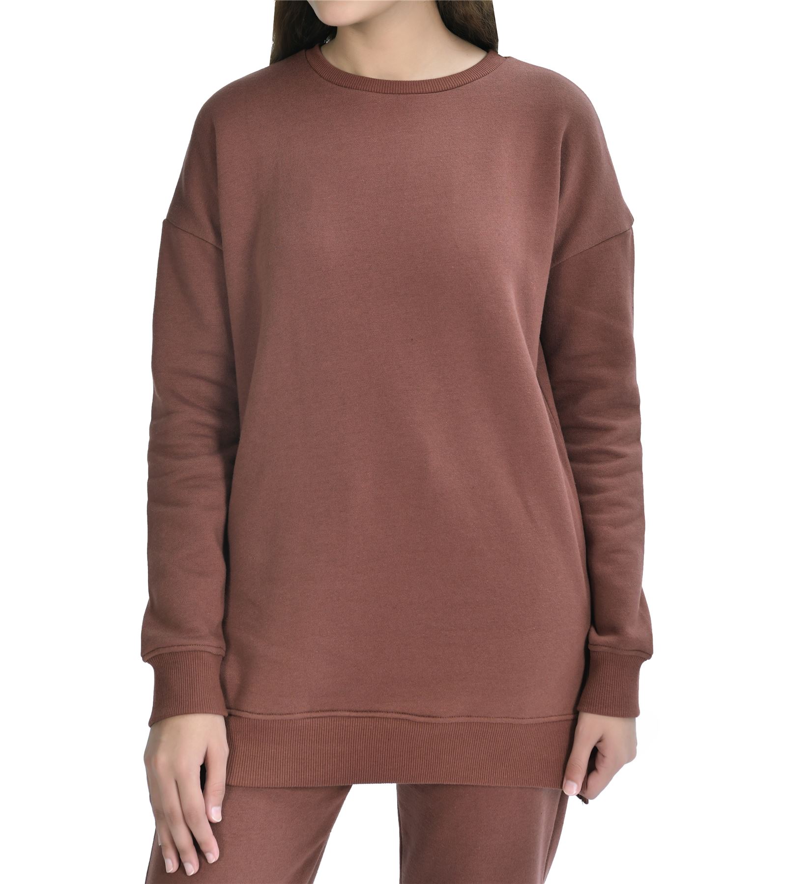 LADIES LONGLINE CREWNECK SWEATSHIRT CHOCOLATE L