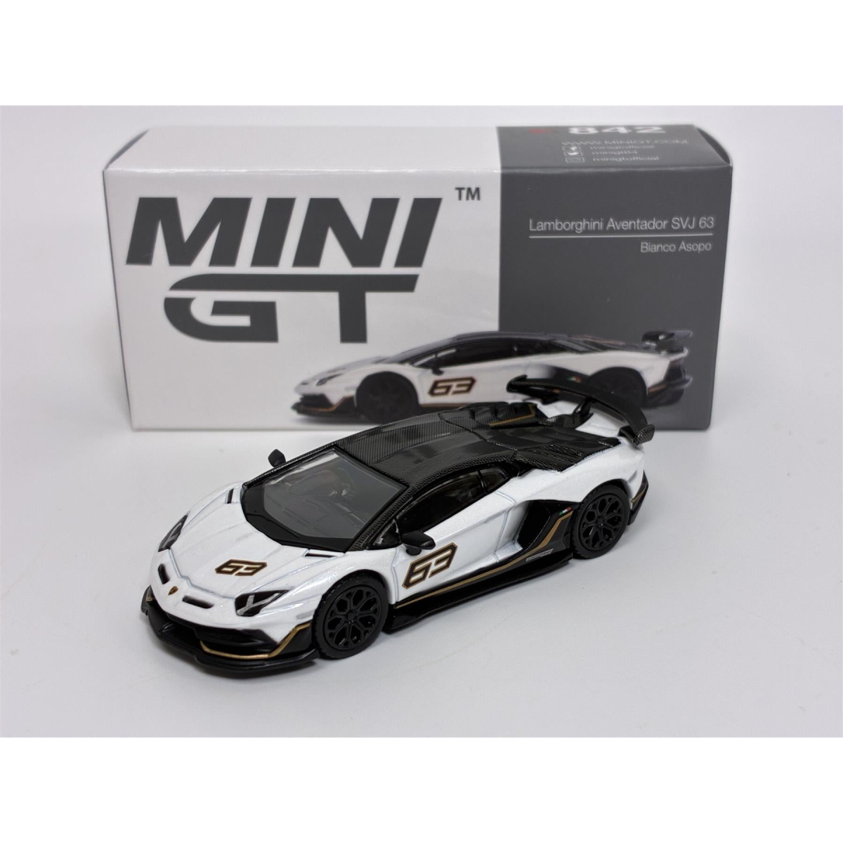 Lamborghini Aventador SVJ 63 Bianco Asopo White RHD 1:64 Mini GT MGT00842R