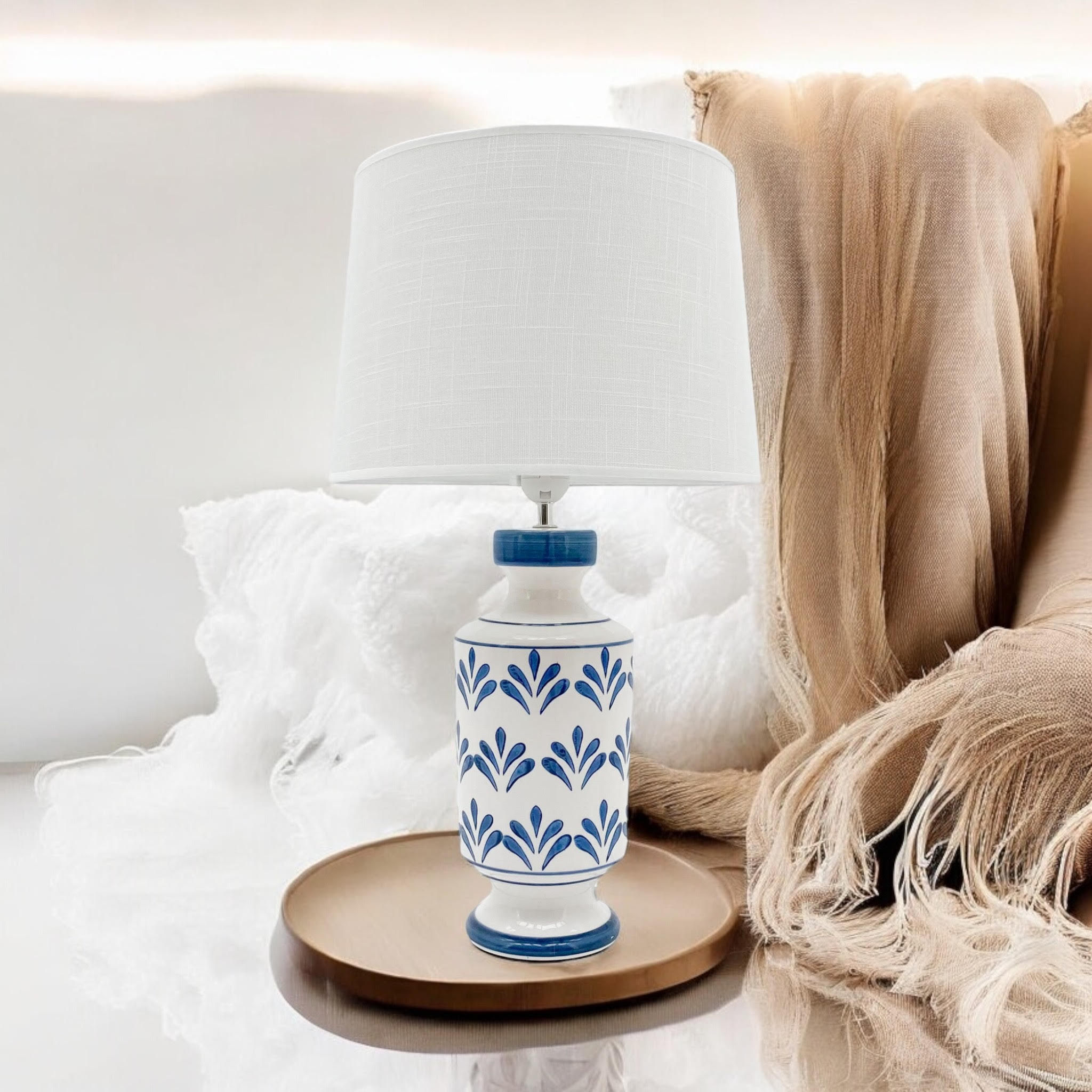 A traditional design table lamp base and shade. The lamp is individually switched by an inline rocker switch and is double insulated to allow for safe use without need of an earth wire. Great for lighting in any setting and ideal in a living room or bedroom., In Line switchHigh Quality Shade