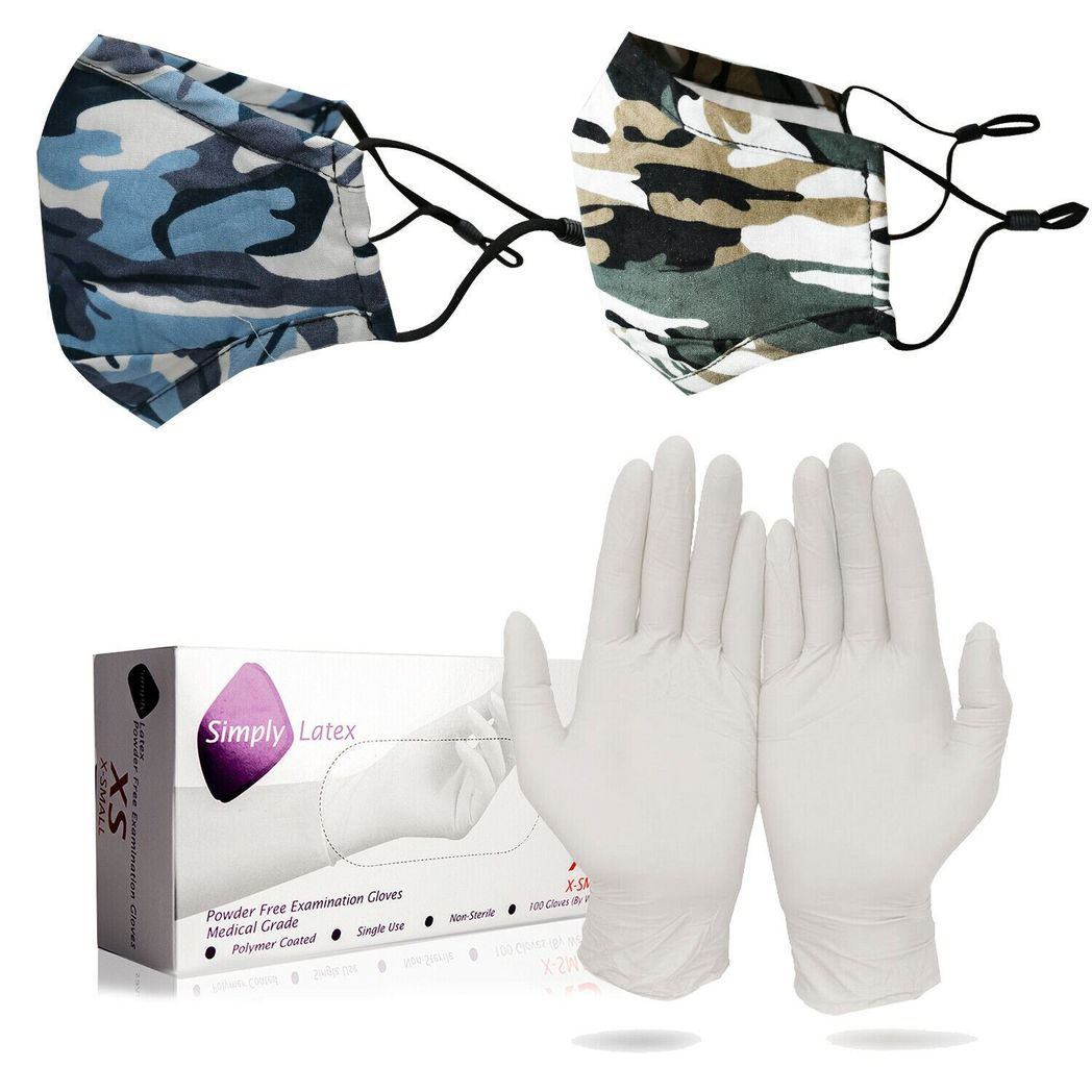 Latex X-Small Gloves (Age 6-10) & Spandex Kids Camouflage Face Mask (Age 6-12) Powder-Free X-Small Disposable Latex Gloves, Box of 100: Suitable for general use and provides protection against pollution, irritation and dust. The durable and soft structure ensures maximum flexibility and user comfort during use, Easy to wear, no distinction between the left hand and right hand. Ideal for general use and provide protection against contamination, irritants and dirt Durable yet soft construction ensures maximum dexterity and user comfort when in use A textured finish offers increased levels of grip when in use The powder-free design prevents the risk of product contamination 100 gloves per dispenser box Suitable Age - 6 to 10 Spandex Kids Camouflage Face Mask, Blue & Brown: Made of high-quality polyester and spandex, soft and breathable, it won't be uncomfortable even in gradually hot weather. Washable and quick-drying fabric for convenience and longevity. Protect your mouth and face from dust, wind, cold, fog and haze, vehicle exhaust, passive smoking, etc. Very breathable, will not cause oxygen deprivation, breath hard and stiflingly hot. Earloop straps design, perfectly attach onto face with great elastic ability, soft but always keeps the shape. Material: Cotton blend + polyester + spandex, the material is very soft Suitable Age - 6 to 12