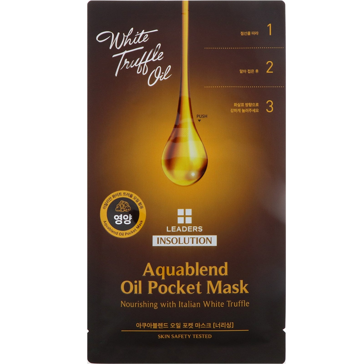 White Truffle Oil Nourishing with Italian White Truffle Skin Safety Tested This highly nourishing pocket mask provides rich nourishment and moisture to flaky rough skin by applying the blended oil through blending precious Italian White Truffle Oil immediately before use.