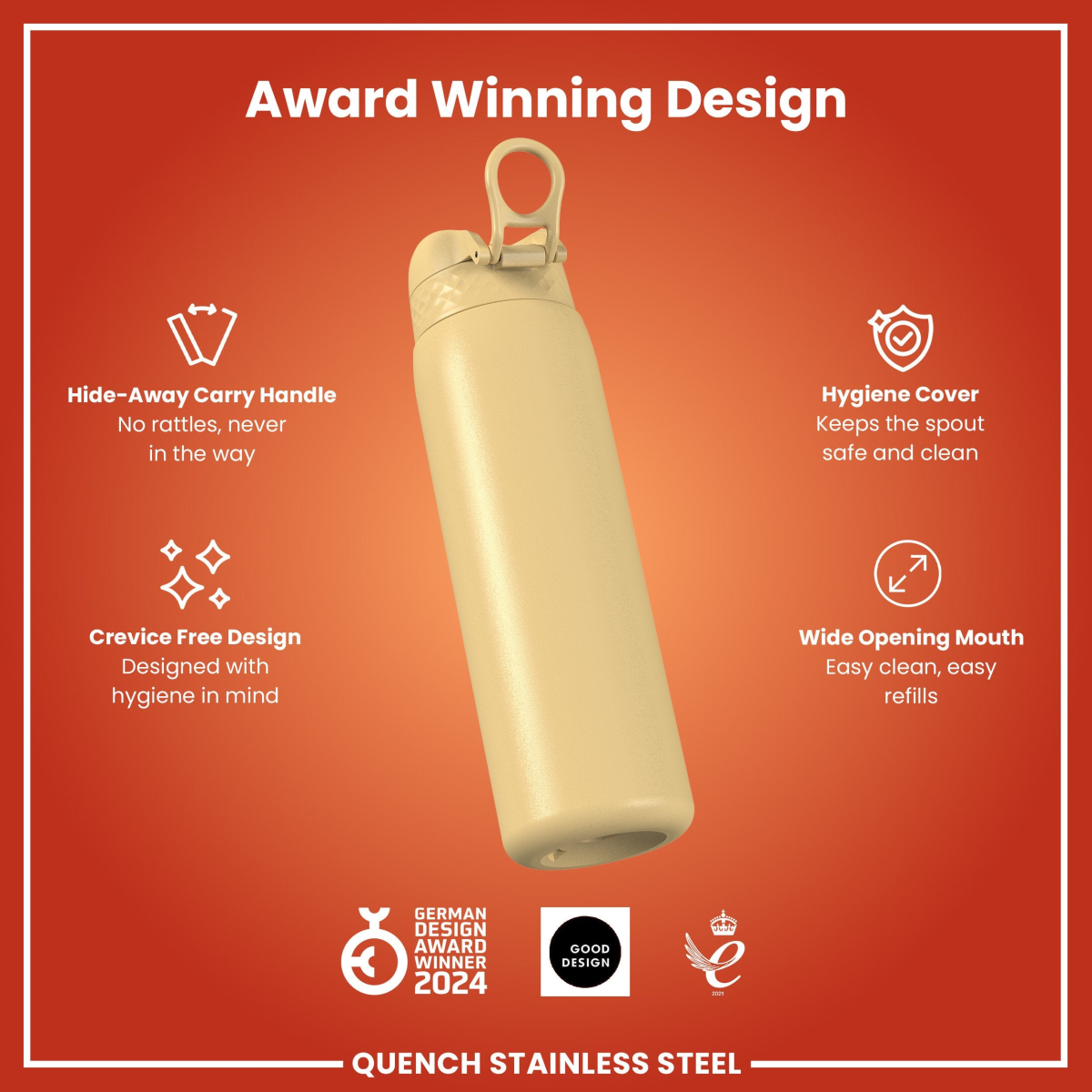 Made from stainless steel. Stainless steel is extremely durable, lasts for years, and is fully recyclable. This refillable and reusable drinks bottle is food safe, odour resistant, easy to hand wash, and keeps drinks fresh and full of flavour.