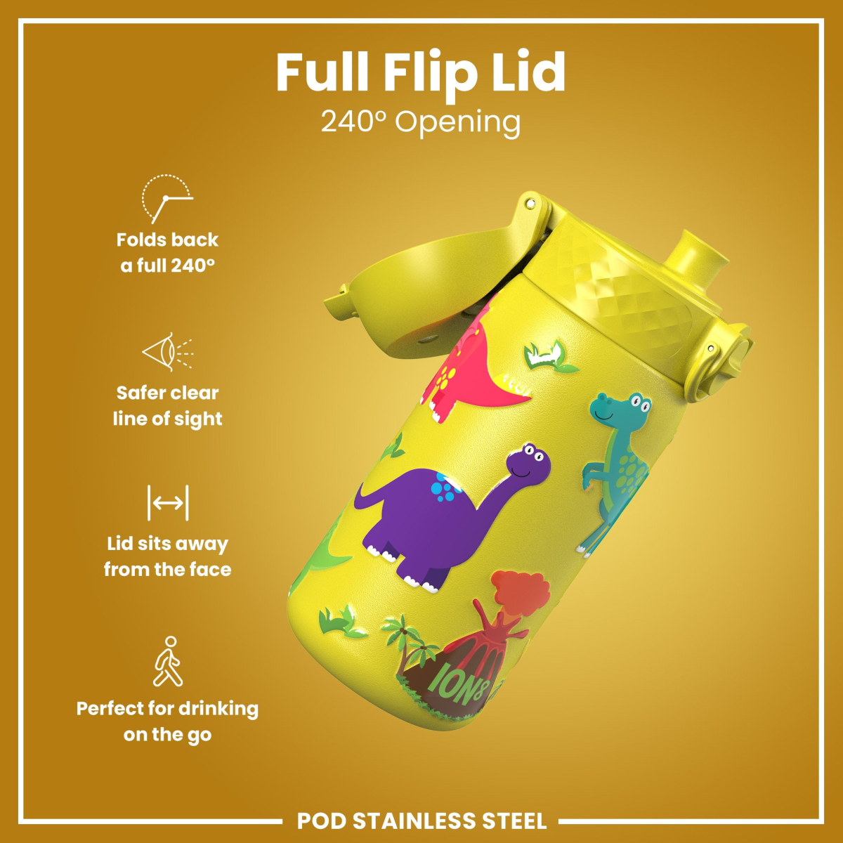 Leak Proof Kids Water Bottle, Stainless Steel, Dinosaurs, 400ml (13oz)
