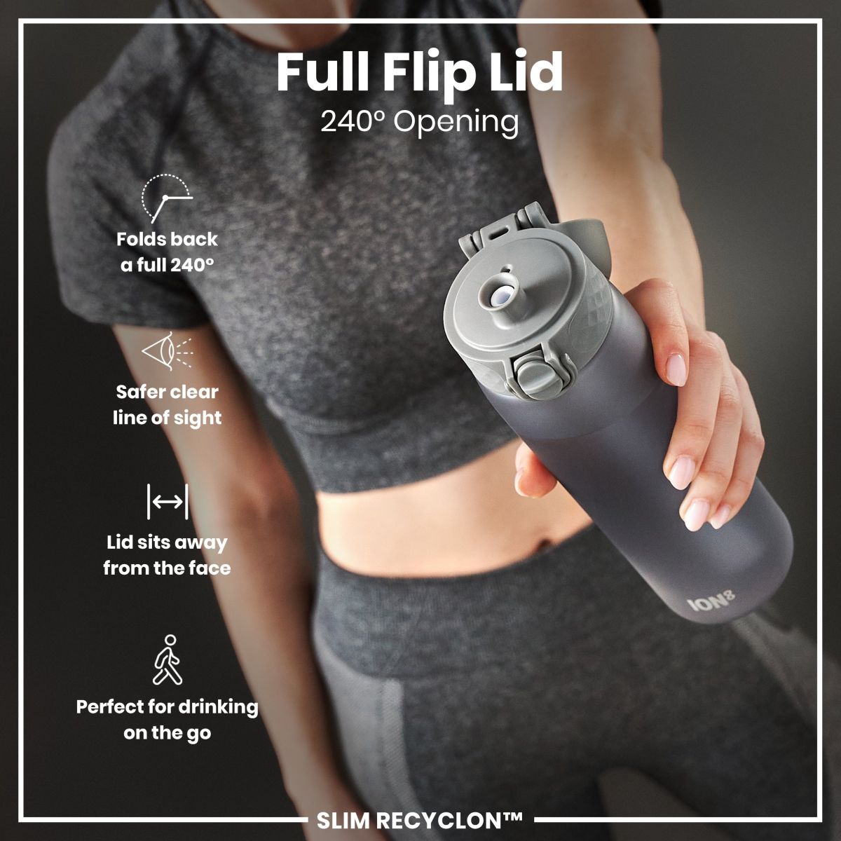 100% leak proof 600ml / 20oz BPA free medium grey water bottle with straw, with a smooth flow for spill-free hydration and hygienic full-flip top cover for one handed use on-the-go.