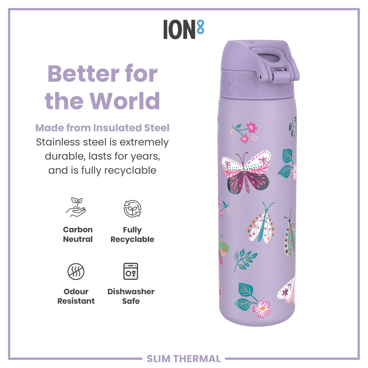 Leak Proof Slim Thermal Steel Water Bottle, Insulated, Butterfly, 500ml (17oz)