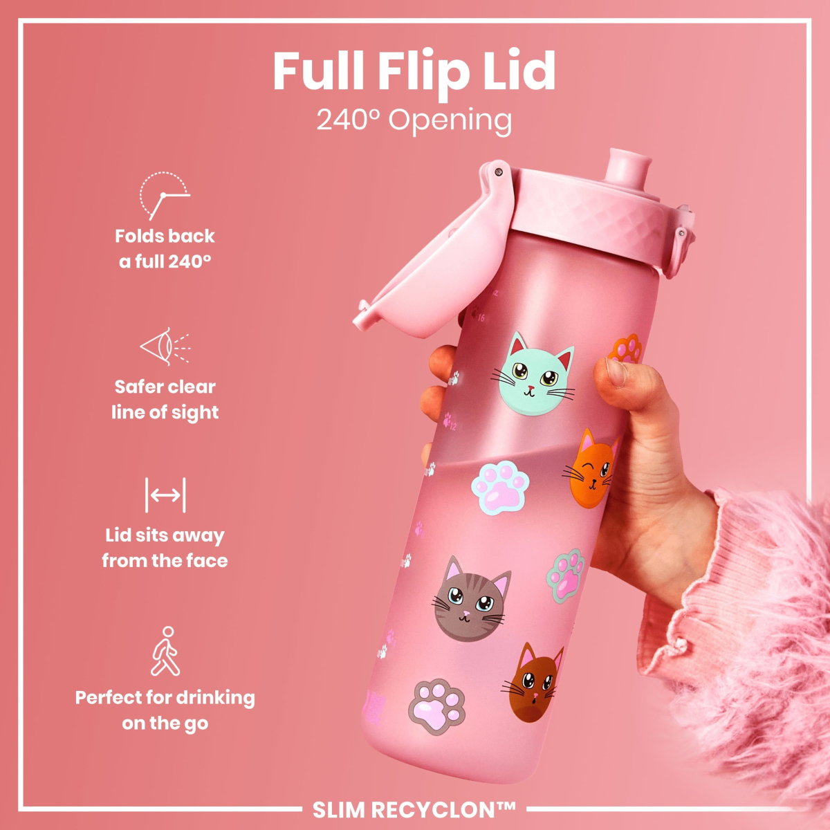 Leak Proof Slim Water Bottle, Recyclon, Cats, 500ml (18oz)