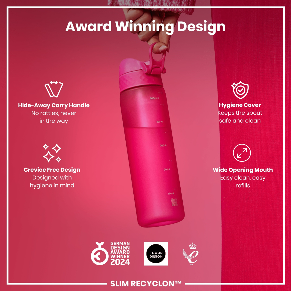 Leak Proof Slim Water Bottle, Recyclon, Pink, 500ml (18oz)