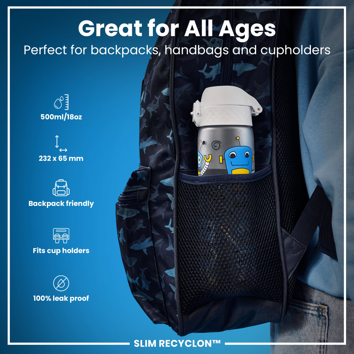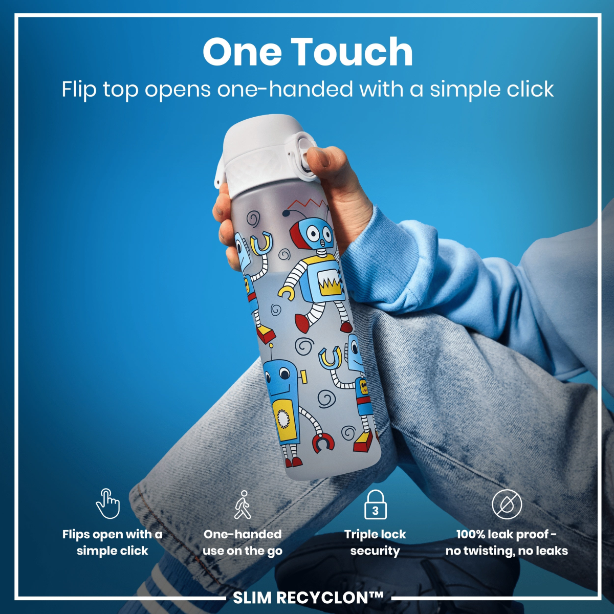 Leak Proof Slim Water Bottle, Recyclon, Robots, 500ml (18oz)