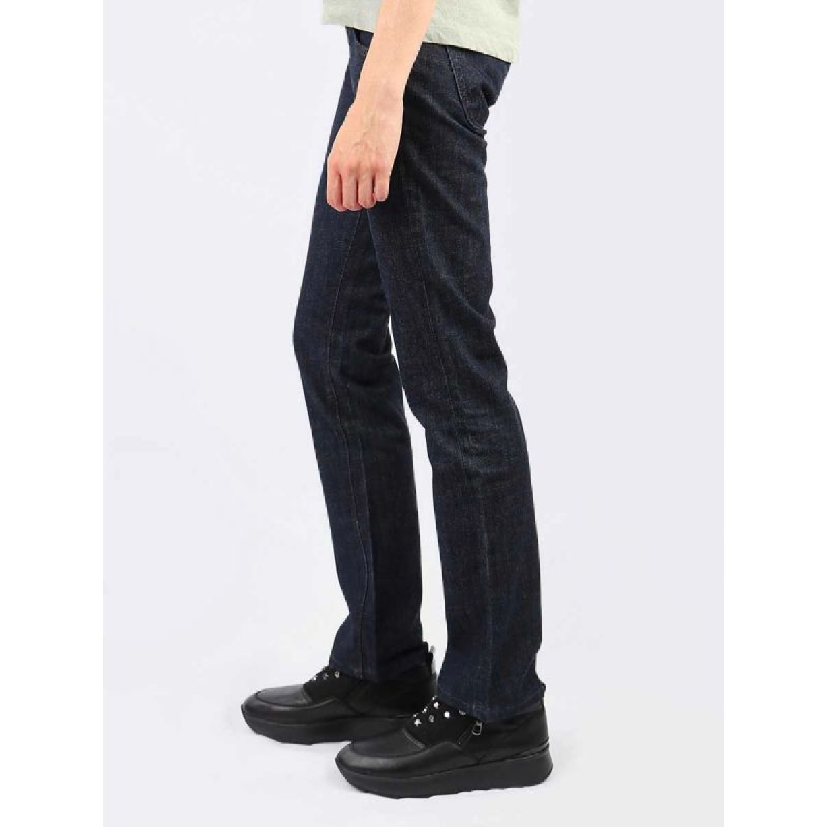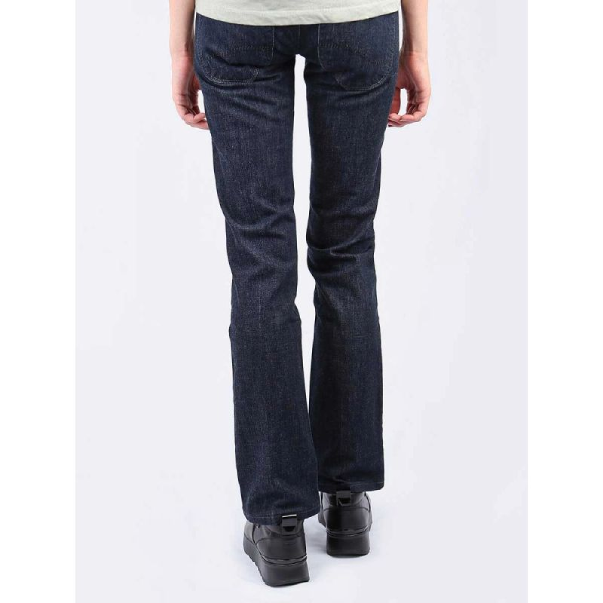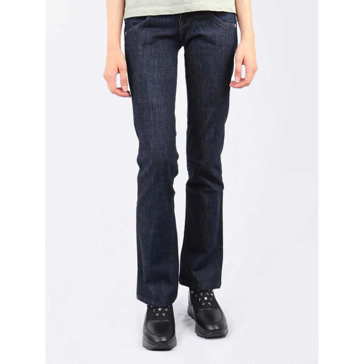 Women's regular-rise jeans with straight legs. Zipper closure. Leather logo patch on the back waistband.