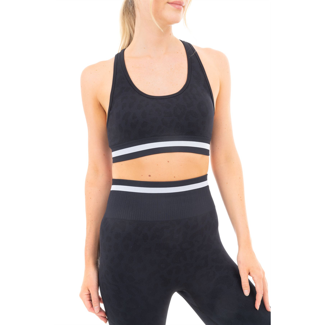 LEOPARD PRINT SEAMLESS BRA BLACK L