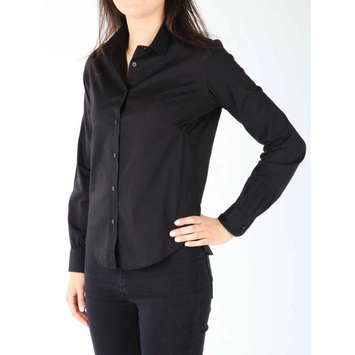 This versatile black women's button-down collared shirt is perfect for a variety of outfits. Material: 97% cotton/ 3% elastane
