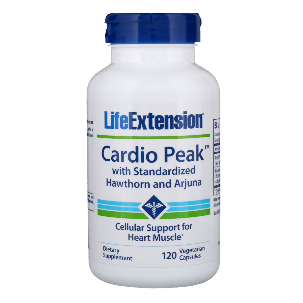 Cellular Support for Heart Muscle Dietary Supplement Non-GMO The formula in Cardio Peak with Standardized Hawthorn and Arjuna gives you two clinically studied botanical extracts that deliver optimum support for normal heart muscle function and coronary artery health. Benefits at a Glance: Two powerful cardiotonics support healthy heart function Hawthorn extract supports heart muscle contractions Provides protection against damaging oxidative molecules Arjuna helps protect critical endothelial layer in coronary arteries Use as part of overall cardioprotective program Cardiotonics have traditionally been used to improve heart function and vitality. Formulated for optimum heart muscle health, CardioPeak with Standardized Hawthorn and Arjuna provides dual cardiotonic support. Extensive research demonstrates that the botanical extracts hawthorn and arjuna deliver optimum support for normal health muscle function and coronary artery health. Used for centuries for heart health, the cardiotonic effects of hawthorn extract have been well documented in numerous clinical trials. Hawthorn contains specific bioflavonoid complexes targeted to help promote normal circulation and efficient heart muscle function. Studies indicate that the constituents in hawthorn powerfully support: Strong contractive force of the human heart muscle. Protection for heart muscle cells from oxidant damage. Normal gene expression to promote cardiovascular health. Improved cardiovascular performance. Studies have also strongly affirmed arjuna extract's role in complementing the effects of hawthorn in support of enhanced heart function. number of scientific studies have shown that arjuna delivers strong support for: Enhanced heart muscle tone, improving its "squeeze" and increasing the amount of blood it can pump each second without exhaustion. Healthy endothelial function. Improved exercise endurance. A comprehensive program that includes diet, exercise, and lifestyle changes is important to your cardiovascular health. For unique cardiotonic support for a strong and healthy heart, Cardio Peak with Standardized Hawthorn and Arjuna may become a key element in your daily regimen!