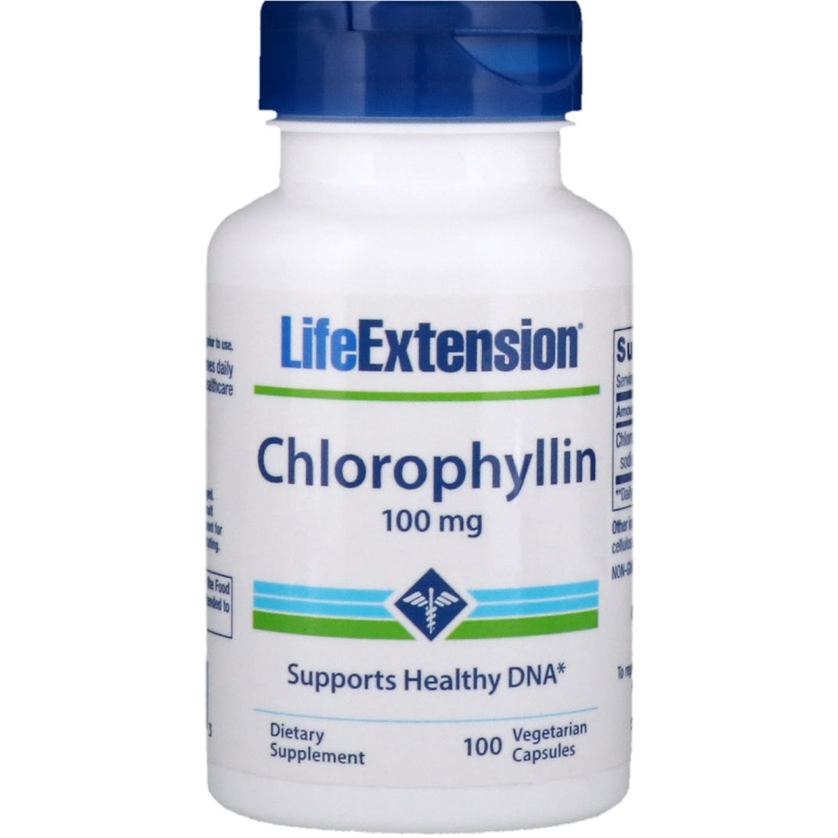 Supports Healthy DNA Dietary Supplemen Non-GMO It has been estimated that the DNA in each cell of the body experiences 10,000 oxidative hits per day. Human studies show lifestyle and other environmental influences may profoundly modify outcomes of aging. It is not just environmental toxins (e.g., cigarette smoke, coal dust, and diesel emission particles) that pose a concern. Foods cooked at high temperatures also inflict cellular damage. Deep-fried foods along with well-done beef steak, hamburgers, and bacon cause the formation of gene-mutating heterocyclic amines. Even so-called healthy foods contain small amounts of undesirable substances. Chlorophyllin has been shown to have DNA-protective and antioxidant properties, inhibiting DNA adduction.Chlorophyllin also quenches all major oxygen species and acts to protect mitochondria.