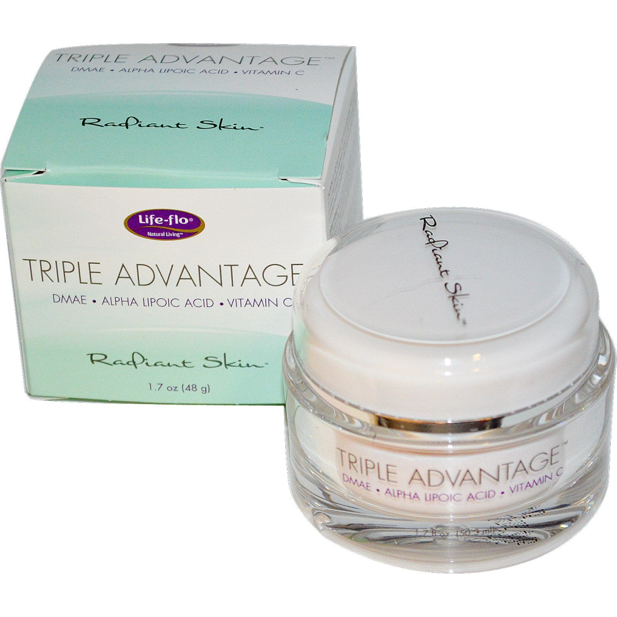 Natural Living DMAE Alpha Lipoic Acid Vitamin C Triple Advantage, a natural moisturizing and firming cream, combines the nutrient-rich complex of DMAE, Alpha Lipoic Acid and Vitamin C with additional vitamins and botanicals to leave your skin feeling firmer and younger. The immediate benefits of Triple Advantage, will get your skin noticed. Ingredients that focus on intense moisturizing & softening of the skin.