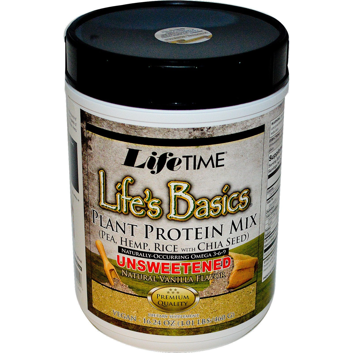 Life Time, Life's Basics, Plant Protein Mix, Unsweetened, Natural Vanilla Flavor, 16.24 oz (460 g)