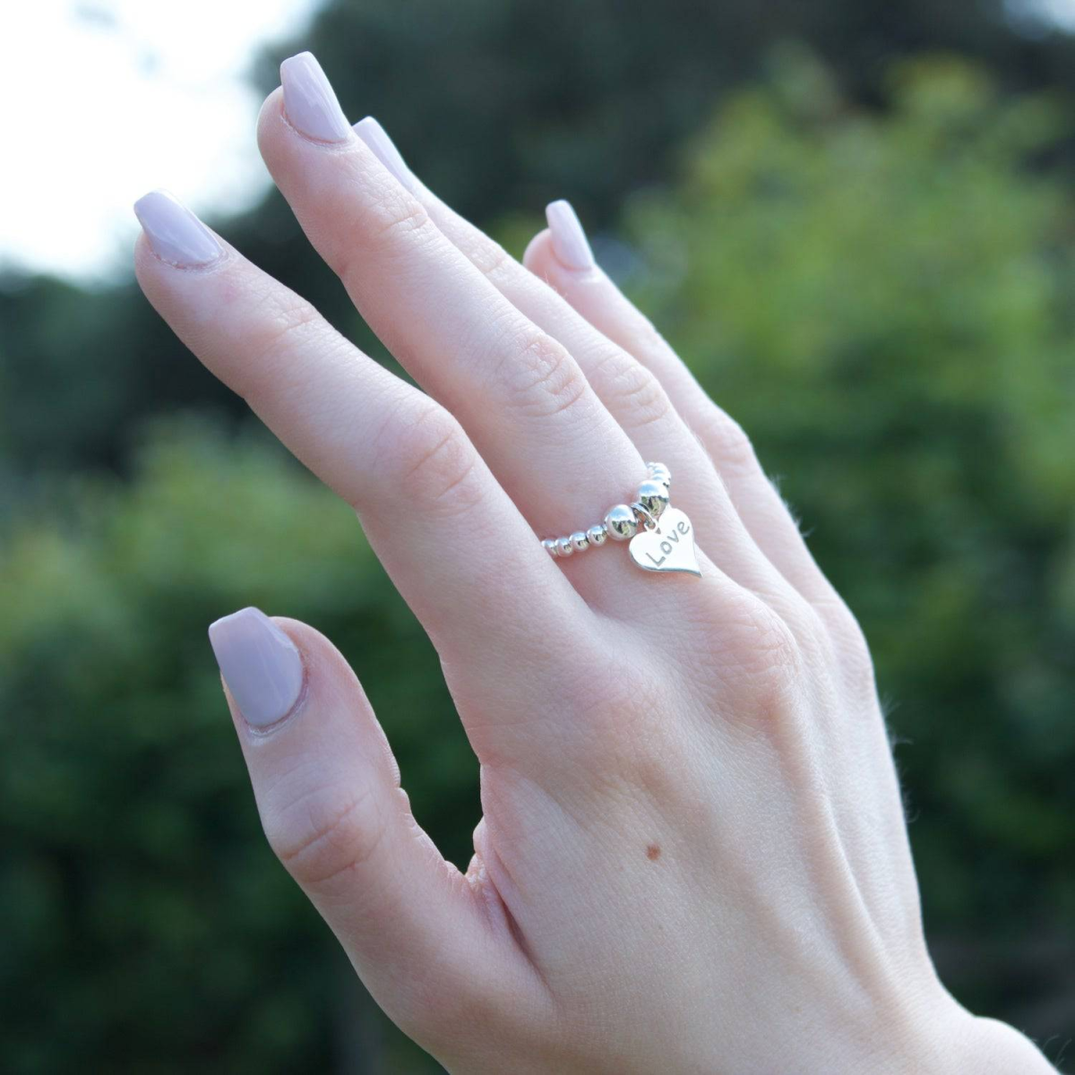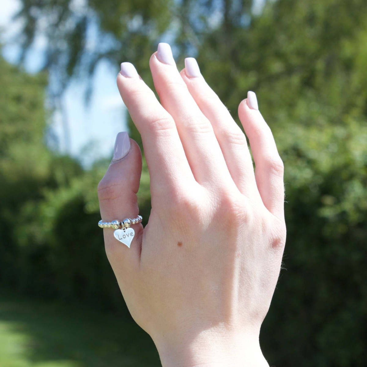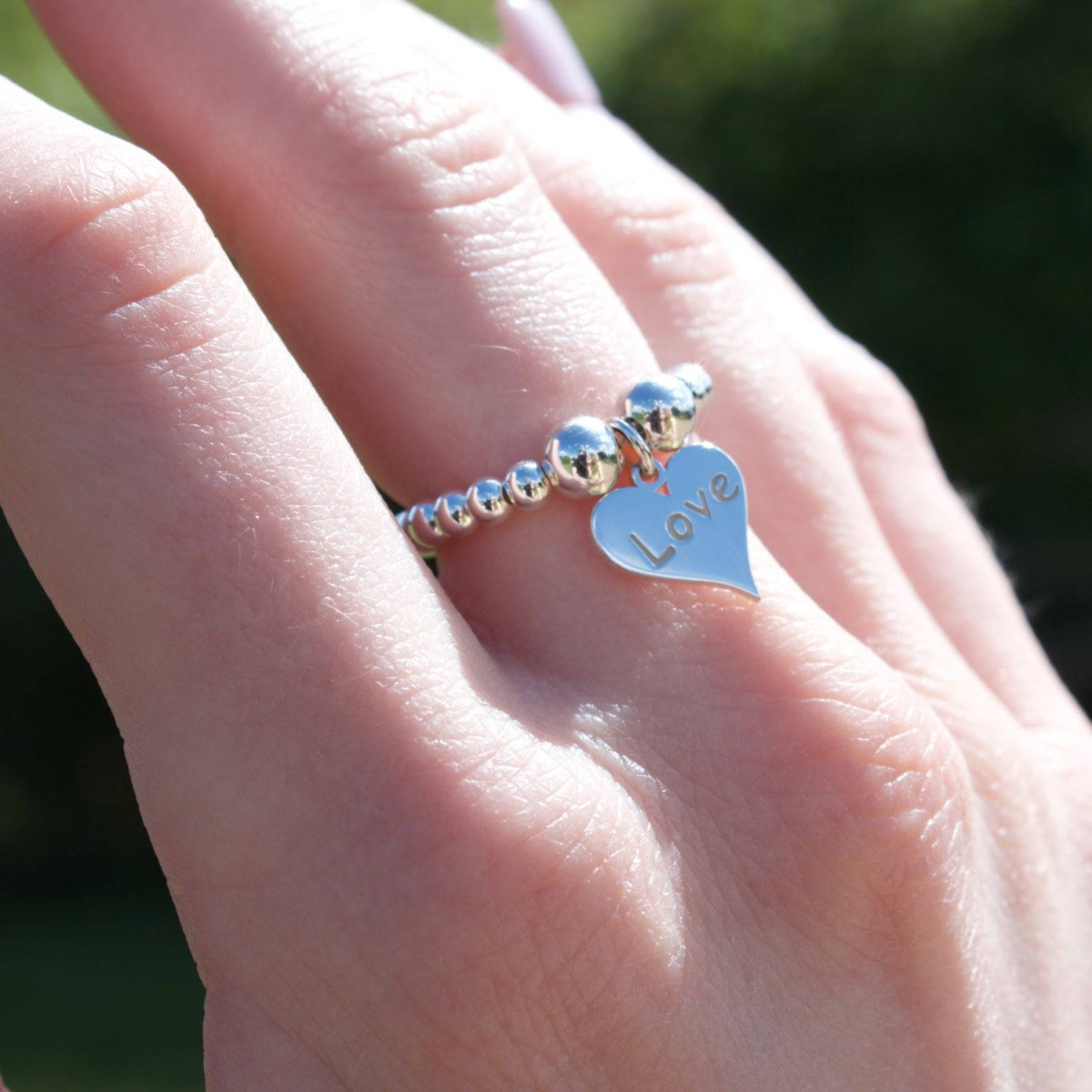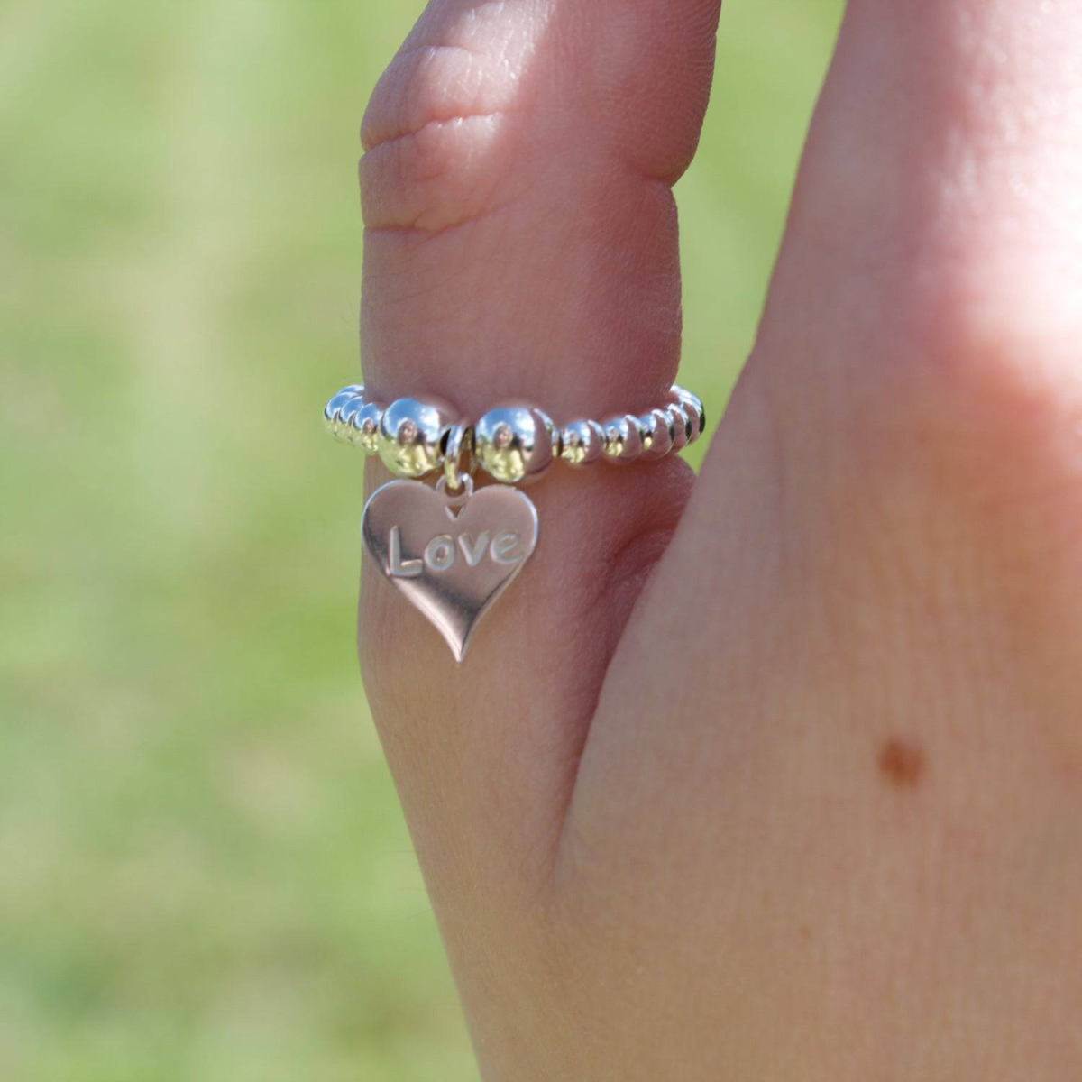 Elevate your jewellery collection with our Silver Ball Bead Ring with Love Heart charm. These rings are handmade featuring 20 x 3mm sterling silver beads and 2 x 5mm sterling silver beads and a beautifully crafted love heart charm, symbolising affection and tenderness. These rings look great individually or stacked, and make for the perfect gift.