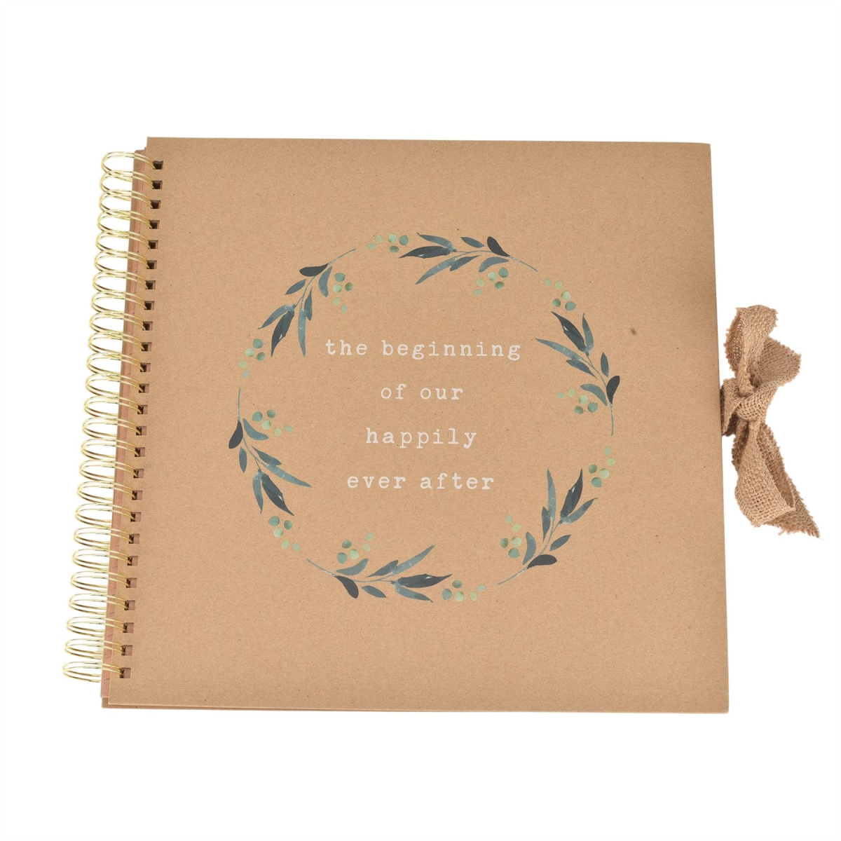 - Green eucalyptus leaf wreath design on the cover
