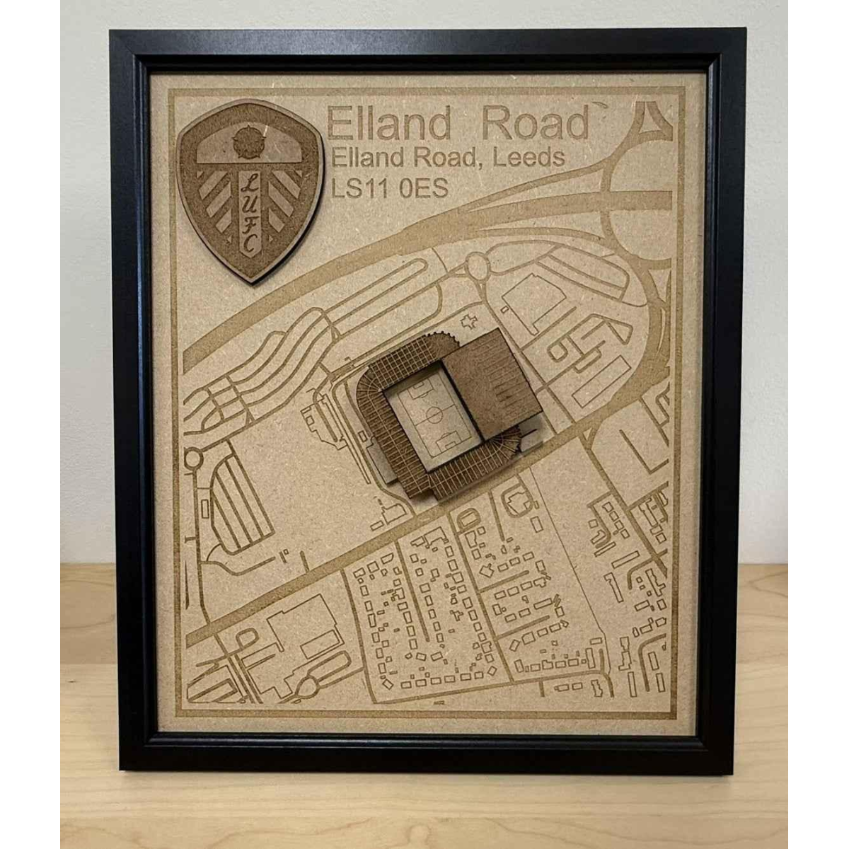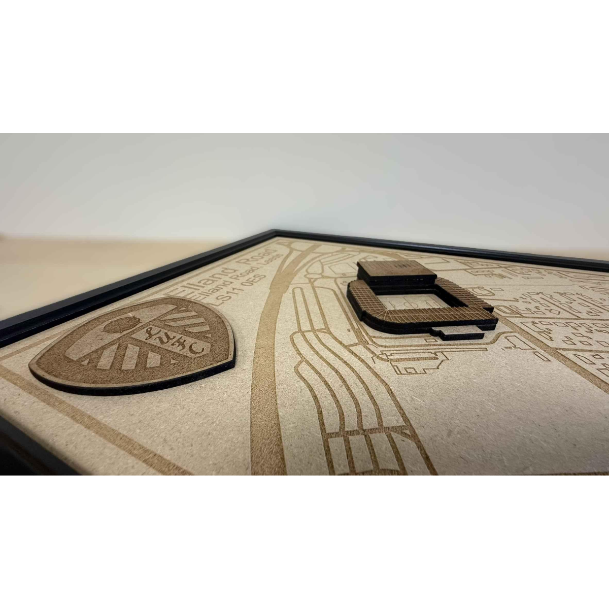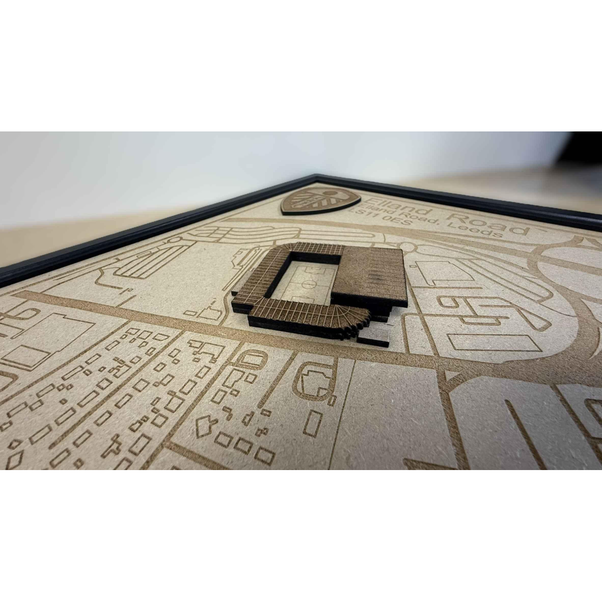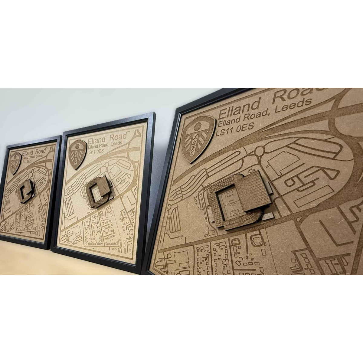 LUFC Elland Road Stadium Print Framed 3D Laser Burned Elland Road Stadium Art