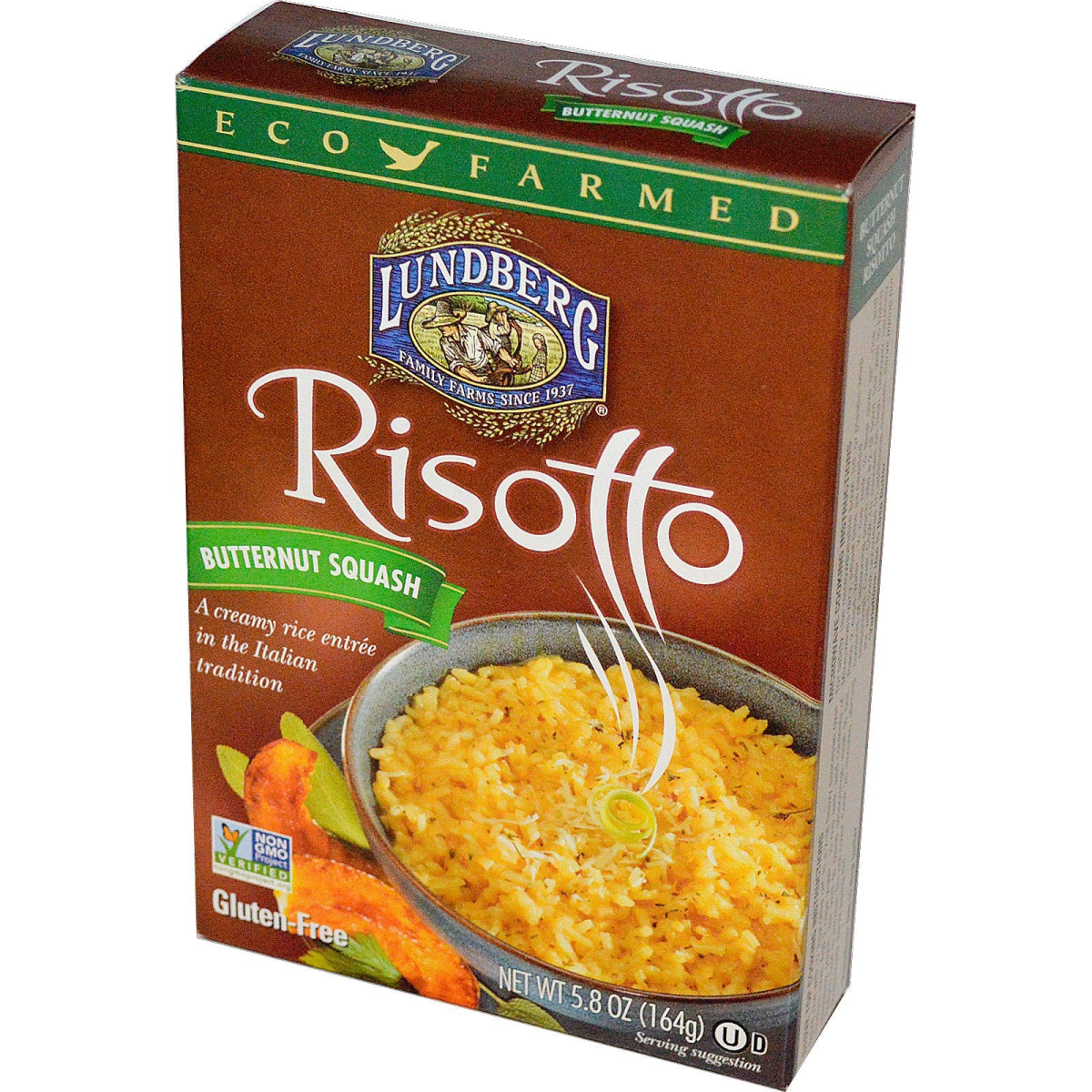 Family Farms Since 1937 Eco Farmed A Creamy Rice Entree in the Italian Tradition Non-GMO Project Verified Gluten Free We've blended the wholesomeness of rice with quality natural ingredients to create a marvelous Risotto with the traditional Italian flare. This delicious side dish satisfies your craving for comfort food by providing a convenient, easy recipe that is down-to-earth, yet gourmet. Preparing our delicious Risotto take only 20 minutes and unlike traditional Risotto, requires minimal stirring. The secret lies within Lundberg Eco-Farmed Arborio rice. Stir this amazing grain and watch the individual kernels plump into a rich, creamy sauce while the grains remain separate and al dente. Absolutely delectable! Made with the perfect blend of butternut squash, herbs, and spices, our Butternut Squash Risotto makes an excellent dish anytime! Since 1937, the Lundberg family has been dedicated to caring for the land responsibly and sustainably. Our farming methods produce healthful, delicious rice while respecting and protecting the earth for future generations. Today, the spirit of environmental stewardship at Lundberg family Farms continues to grow with every grain of rice. Lundberg Family Farms cares about the environment.