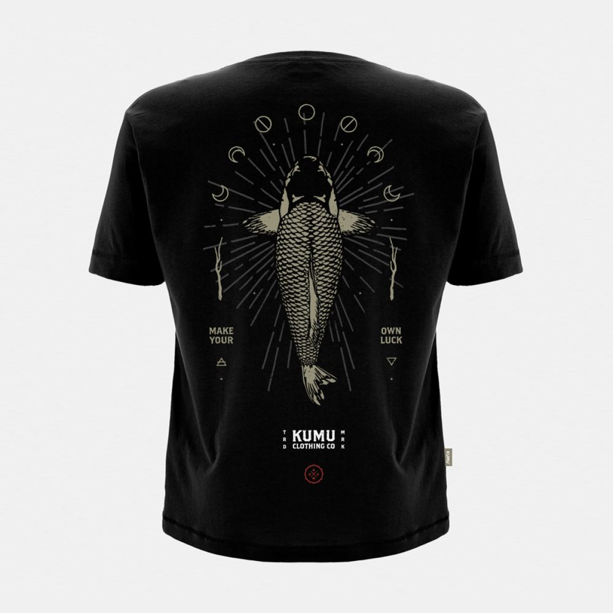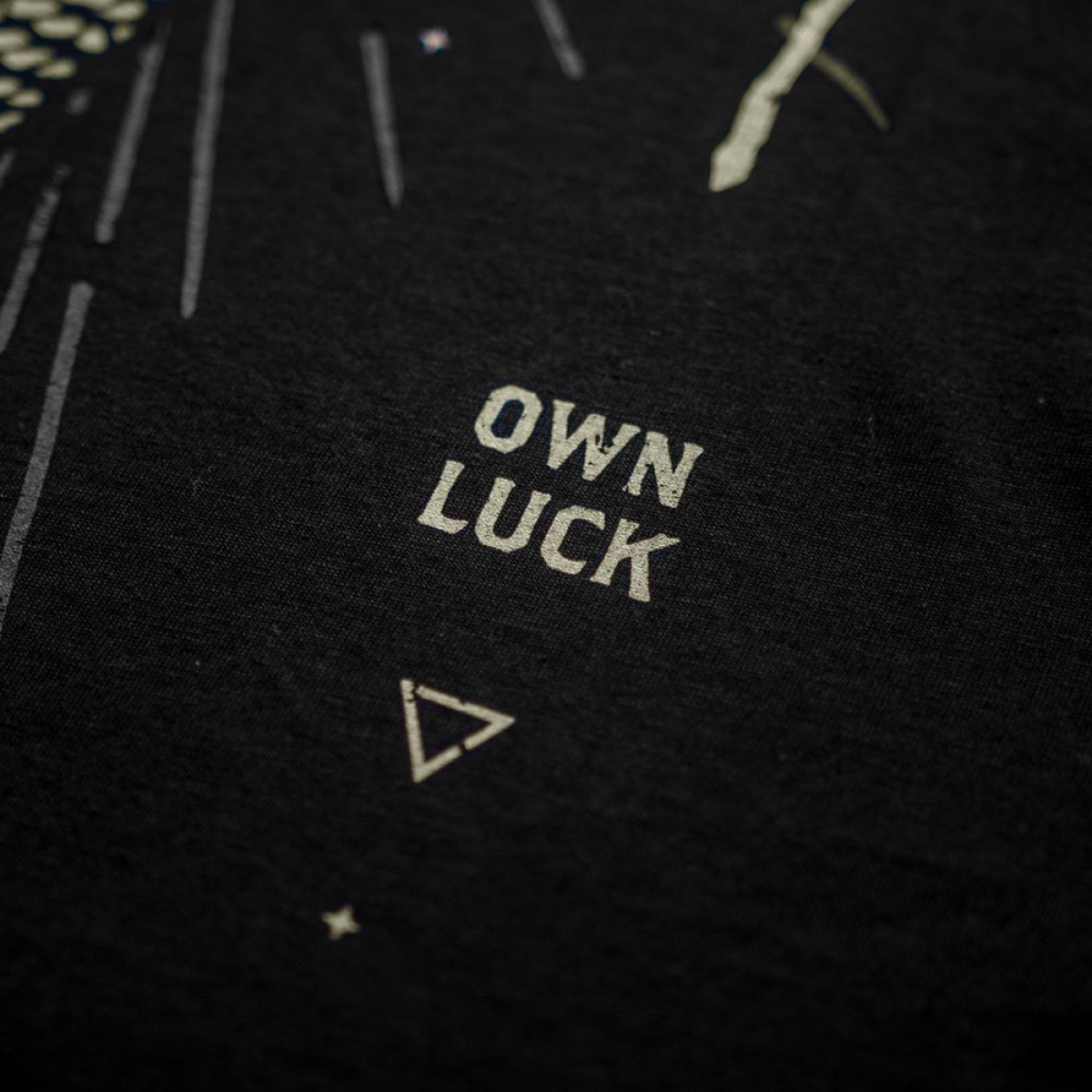Make Your Own Luck. This piece questions the role that ‘luck’ plays in our angling. With so many outside influences beyond our control, all of which play their own part, from moon phases to air pressure, we’re firm believers in the philosophy that you make your own luck; not only in angling, but in life in general. Hand-drawn graphics printed on our super soft 165gsm, 100% cotton fabric with side tab detailing.
