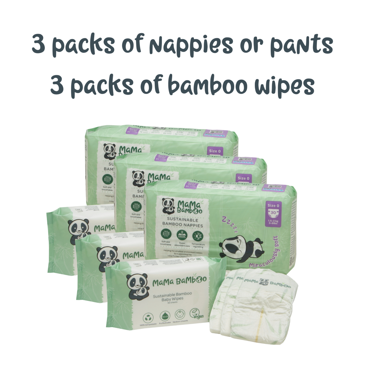 3 packs of nappies and 3 packs of wipes, all with FREE delivery*.