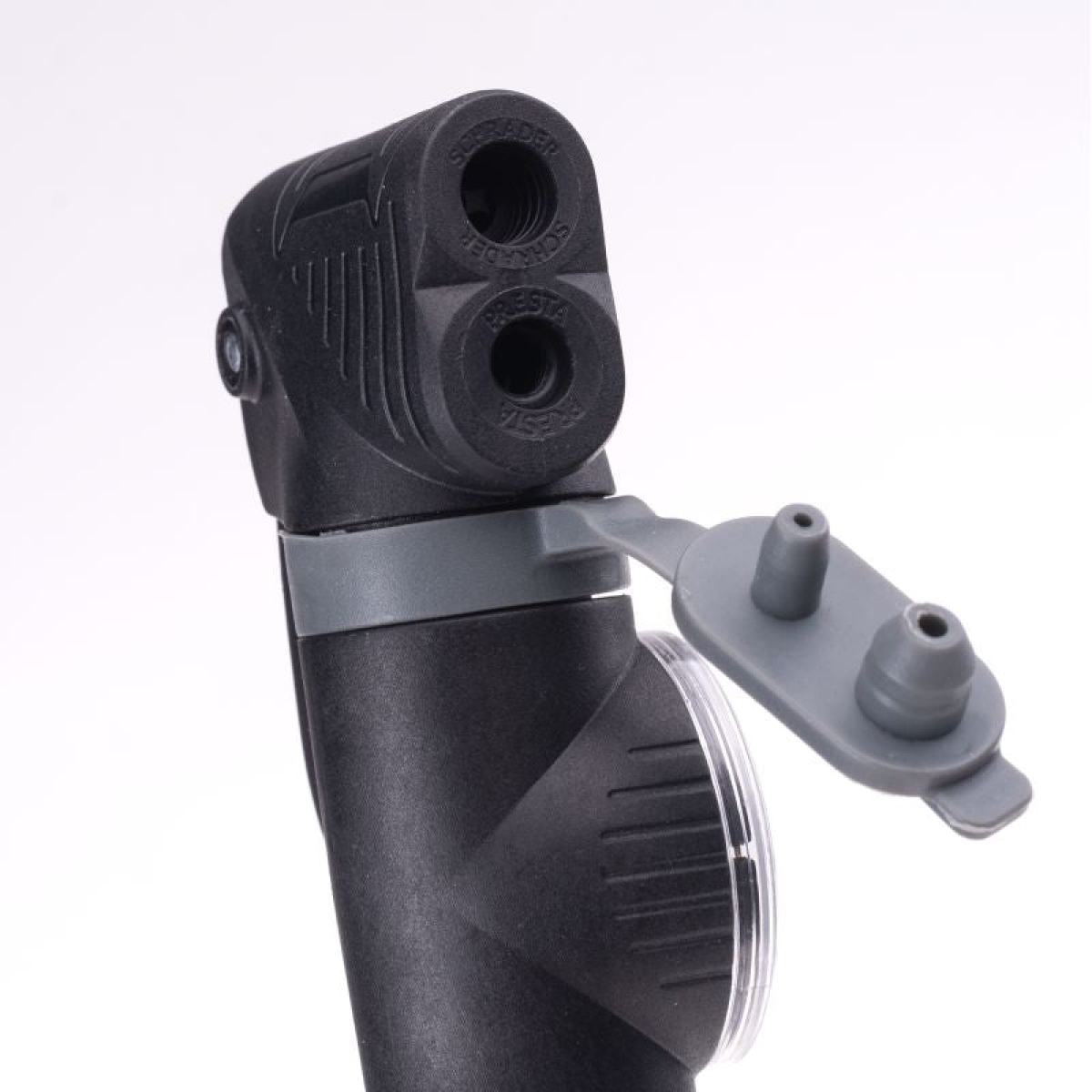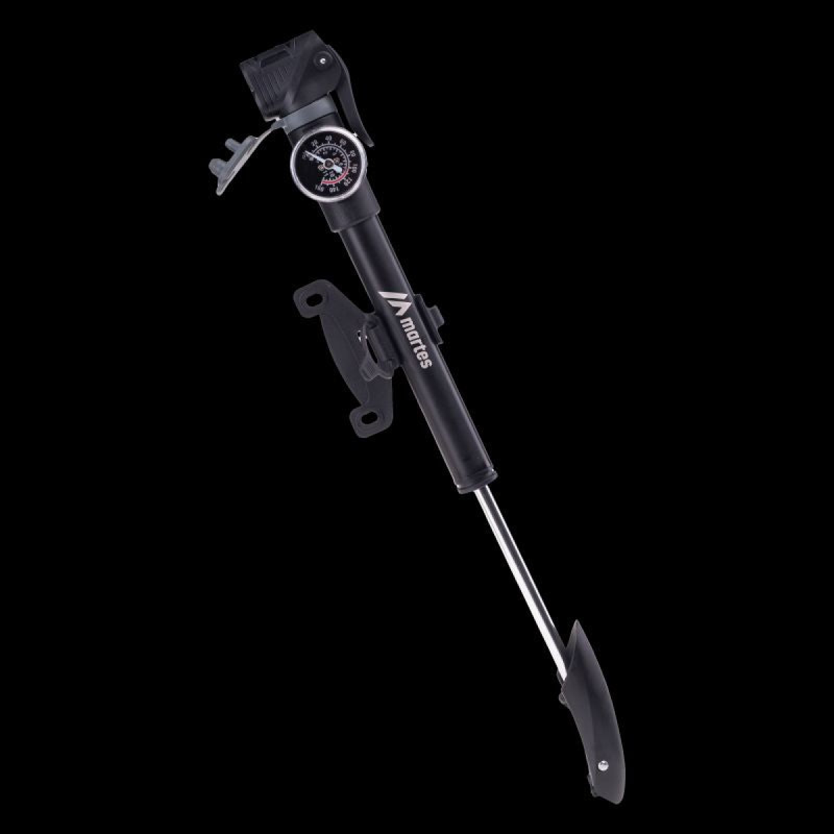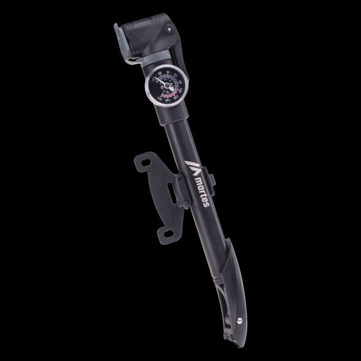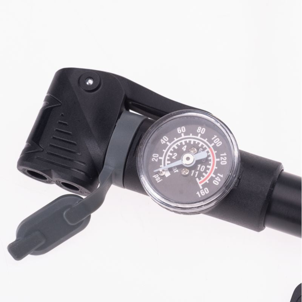 BIKE PUMP SIZE: 30 x 275 mm WEIGHT: 0.153 kg MATERIAL COMPOSITION: - HANDLE: PA - CYLINDER: ALUMINUM ALLOY - PISTON: ALUMINUM ALLOY - HANDLE: PA SPECIFICATIONS: - MAX PRESSURE: 6 BAR - TIPS: AV, FV, DV - PRESSURE GAUGE