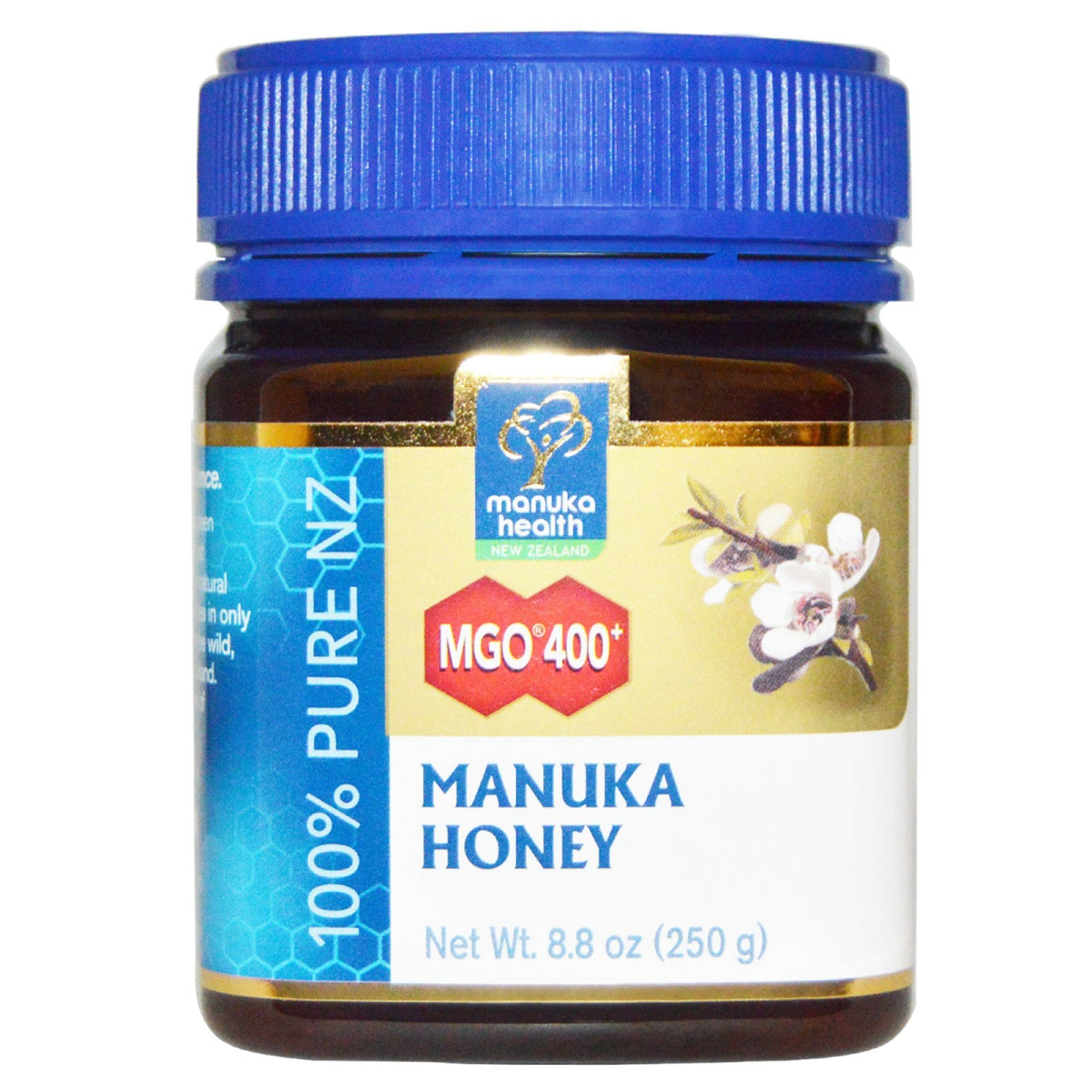 New Zealand 100% Pure NZ Given by Nature, Proven by Science This MGO 400+ Manuka Honey has been tested and is certified to contain at least 400mg/kg of dietary methylglyoxal, a natural compound found in significant quantities in only some Manuka Honey Produced from the wild, uncultivated manuka plant in New Zealand.