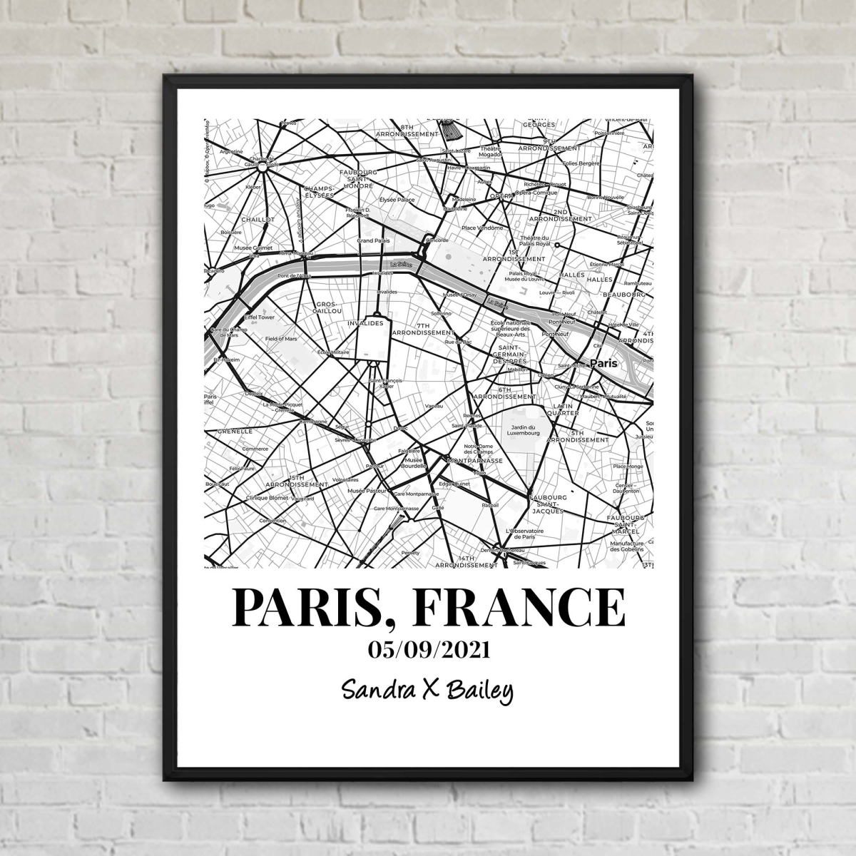 Showcase the place on this custom artwork with a map, location name and add your own message with names and/or dates to record your special event. View our examples in the product images for inspiration.