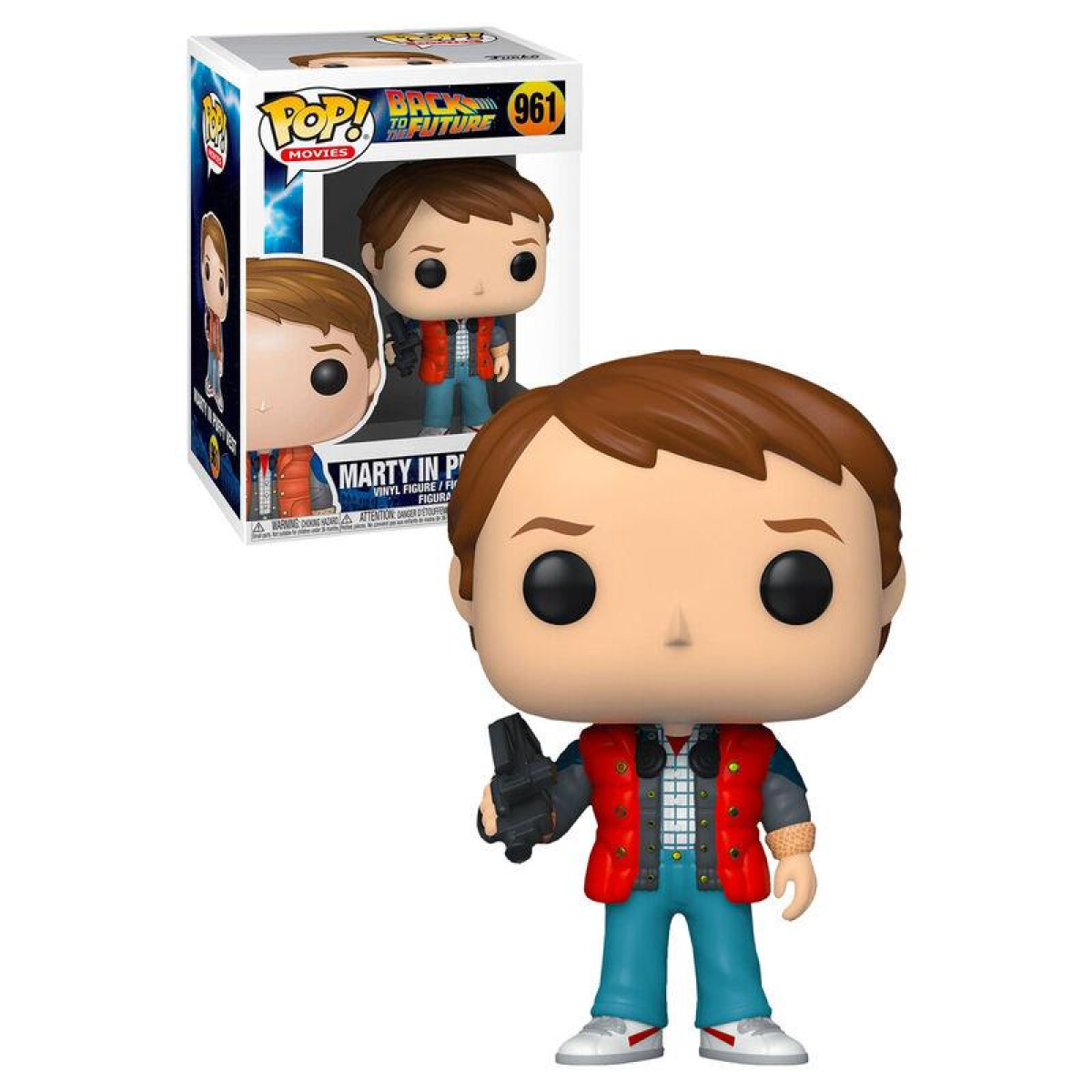 From Back to the Future, Marty in Puffy Vest, as a stylized POP vinyl from Funko Figure stands 9cm and comes in a window display box