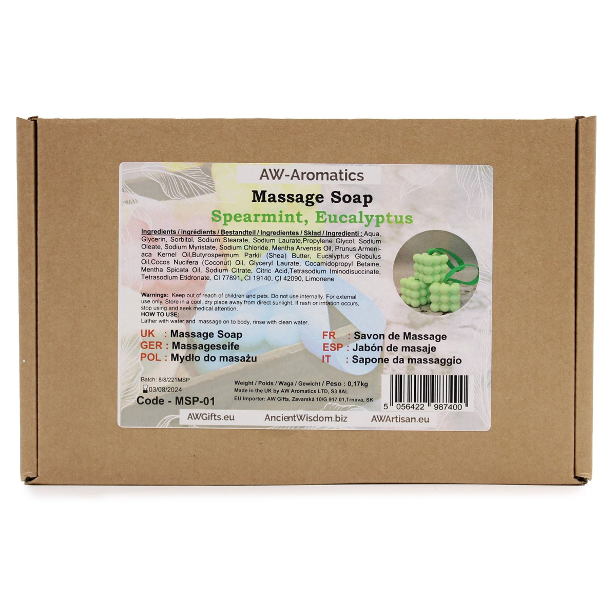 These Massage Soaps combine spearmint and eucalyptus essential oils to provide a soothing and refreshing experience. Designed for gentle application during massages, they help cleanse the skin while offering a cooling sensation. Ideal for aiding muscle relaxation and promoting circulation, these soaps support a calming massage routine without harsh chemicals.