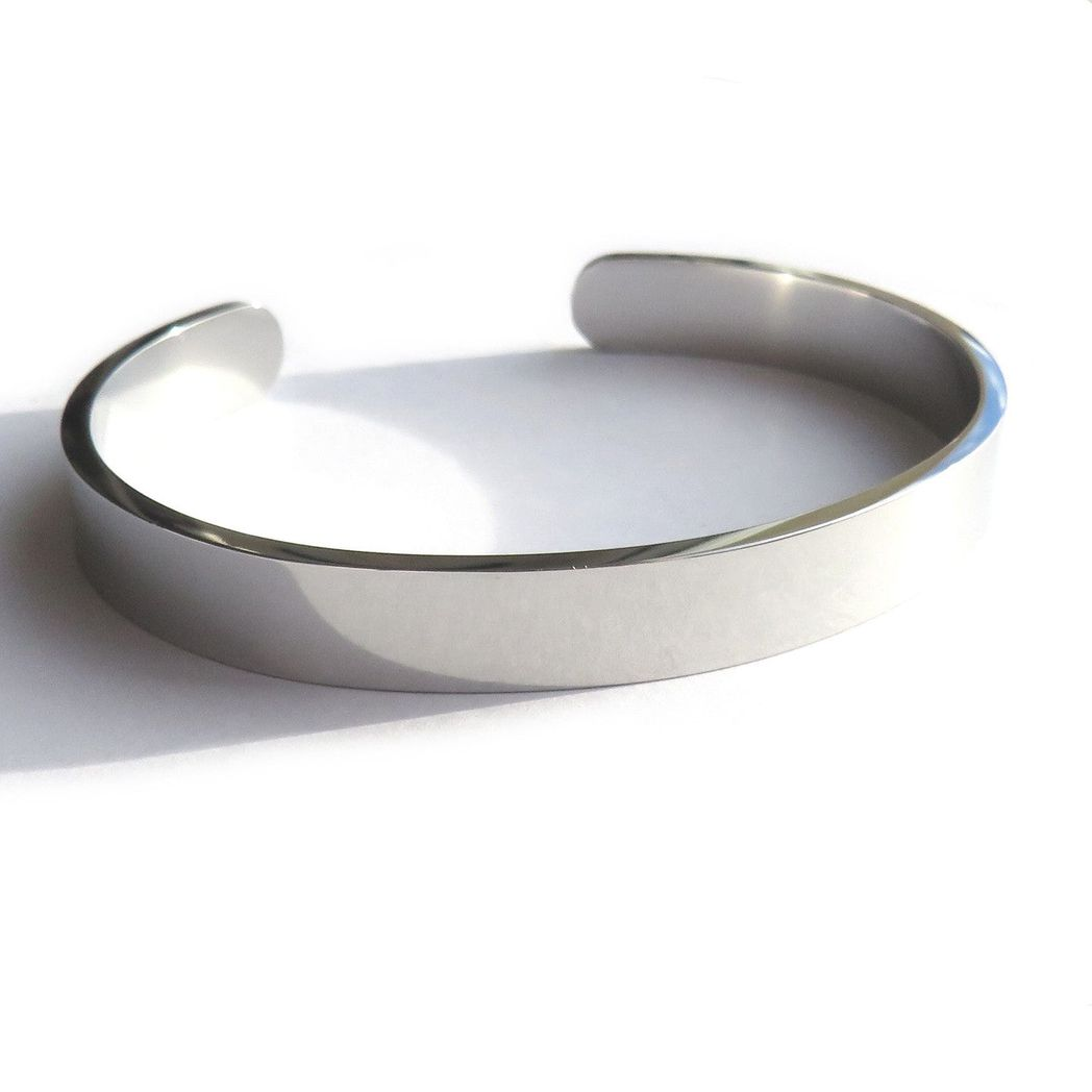 This solid 304 stainless steel bangle is a great gift as a statement piece of jewellery. The plain simple design looks good on its own or when worn in a stack making these great gifts for men or boys and is perfect for the best man, ushers, his 16th, 18th or 21st Birthday, a Graduation or for Fathers day.