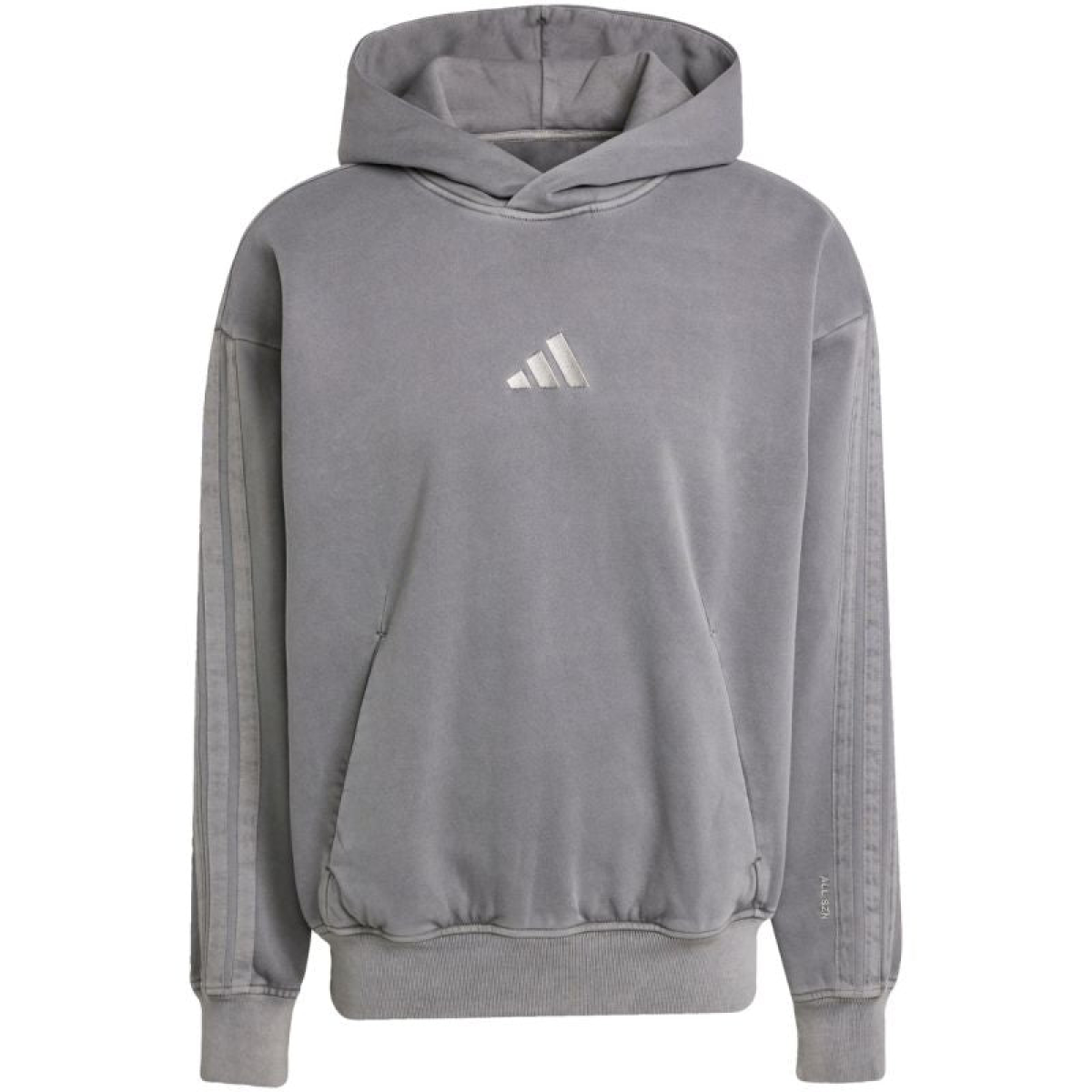 Men's adidas ALL SZN Fleece Washed Hoodie Gray JL6539 This men's adidas sweatshirt is perfect for everyday wear. Soft, cotton fabric. Fleece lining softly hugs the skin for warmth. Loose fit. Non-adjustable hood. Elastic cuffs and hem. Front pocket. Washed finish. Material: 100% cotton