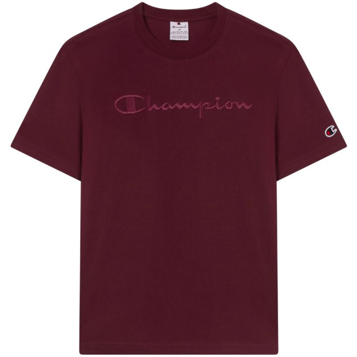 Champion SS Tee Burgundy Men's T-Shirt 220273 RS522 This Champion men's t-shirt is perfect for everyday wear. Regular fit. Small logo on the sleeve. Large logo on the chest. Soft-touch fabric. Material: 100% cotton