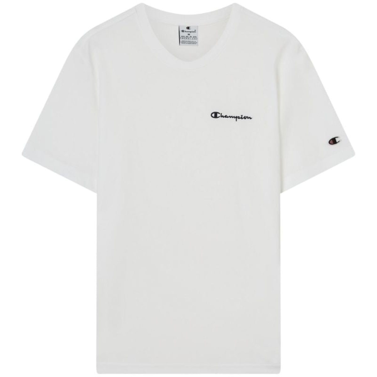 Champion SS Tee Men's White 221798 WW001 This Champion men's t-shirt is perfect for everyday wear. Standard fit. Small Champion logo on the chest and left sleeve. Ribbed crew neck. Soft fabric. Material: 100% cotton