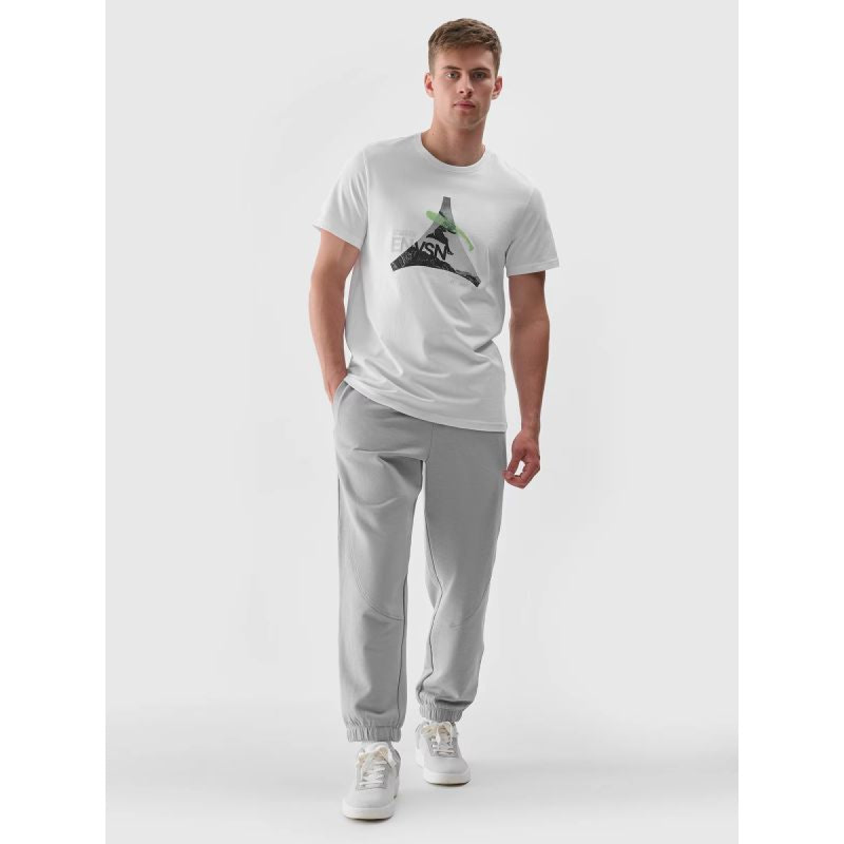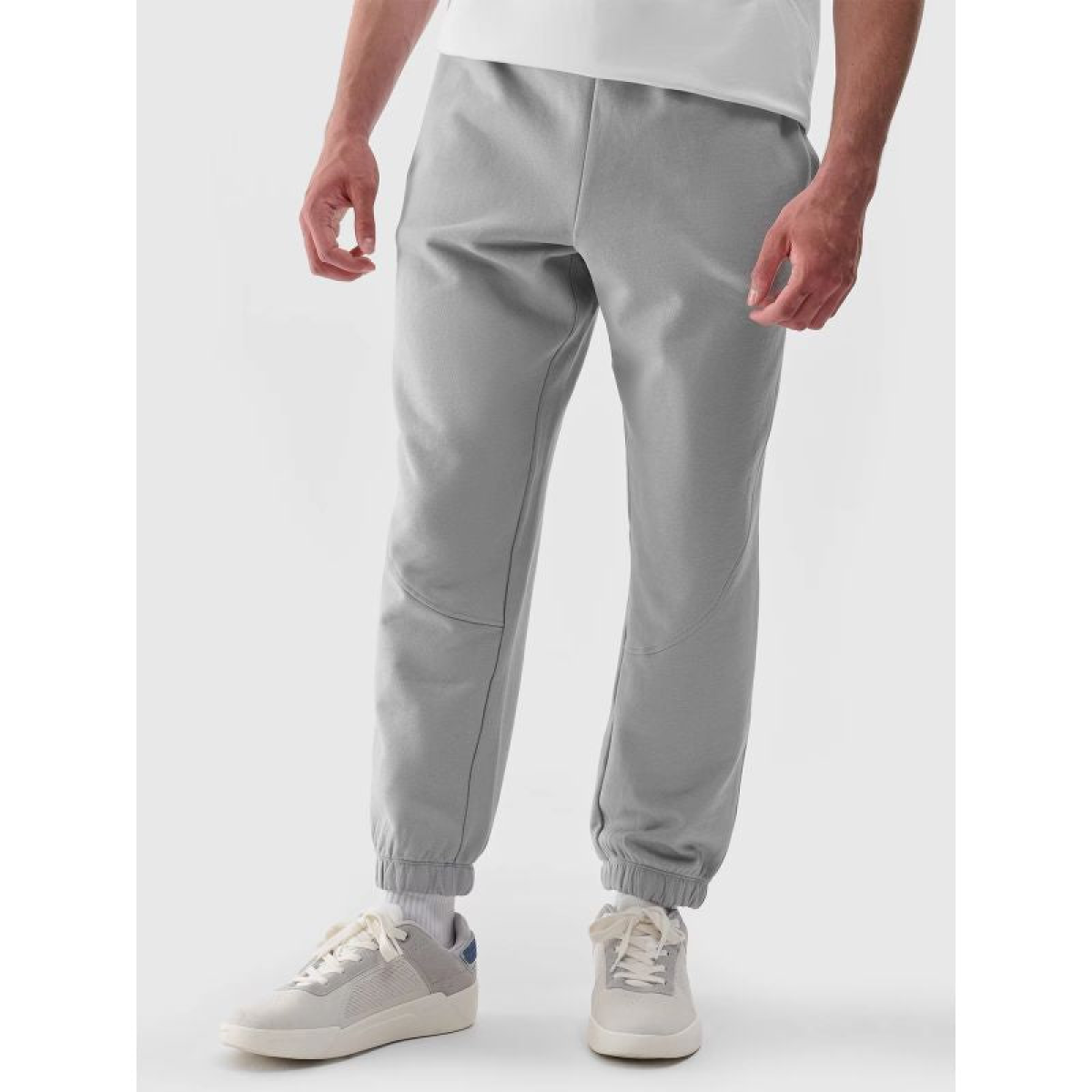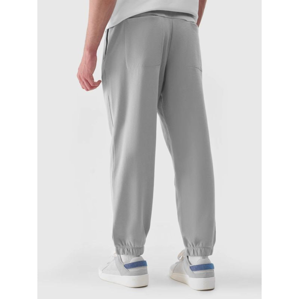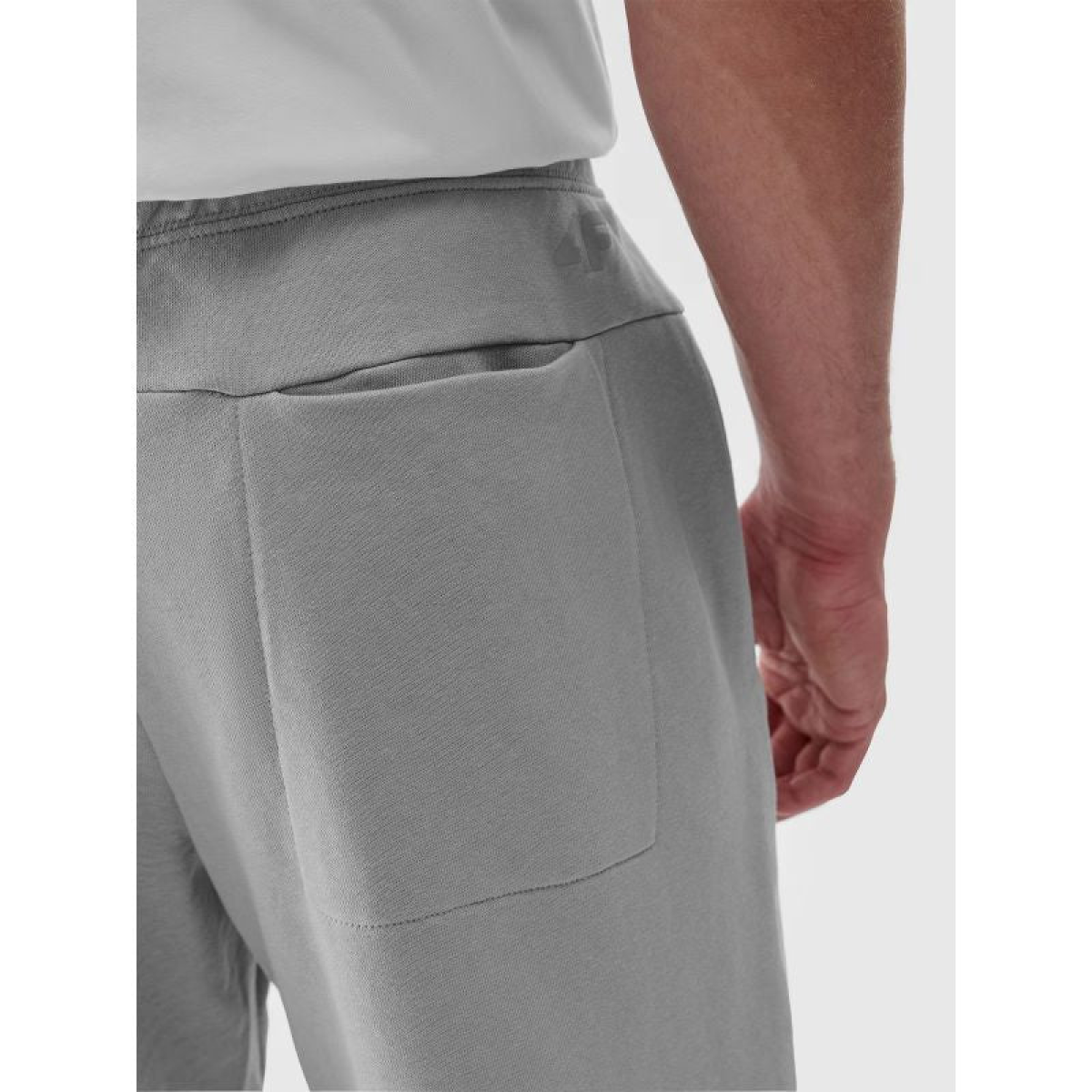 The 4F men's tracksuit is made of 100% cotton, making it soft, durable, and comfortable to the touch. The pants are unlined, making them lighter and suitable for warmer days. There are two open pockets on the sides, and two open pockets on the back. The elastic waistband has an internal drawstring adjustment.