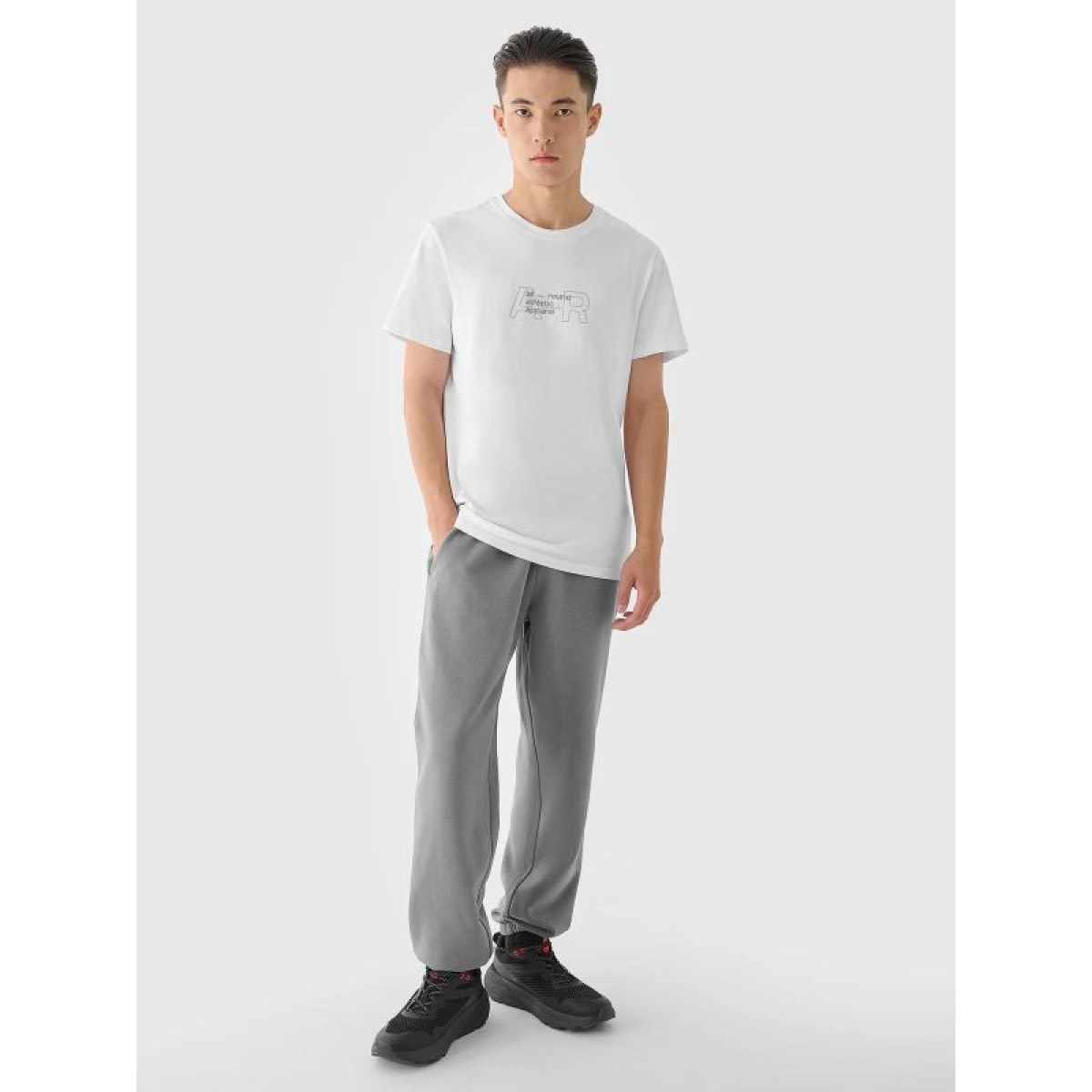 This men's printed T-shirt is perfect for both casual and everyday athletic wear. It features a regular fit that comfortably fits the body and a standard length that falls to the hips. The single jersey weave with a smooth, one-sided surface makes the T-shirt flexible and comfortable to wear. This men's short-sleeved T-shirt, with its 180 gsm weight, is soft to the touch and drapes well. It's non-sheer and provides durability and comfort for year-round wear. The 4F men's T-shirt is made of 100% cotton , making it soft, durable, and pleasant to the touch. The crew neckline is finished with a light ribbed trim. The front features a visible "All-Round Athletic Apparel" print.