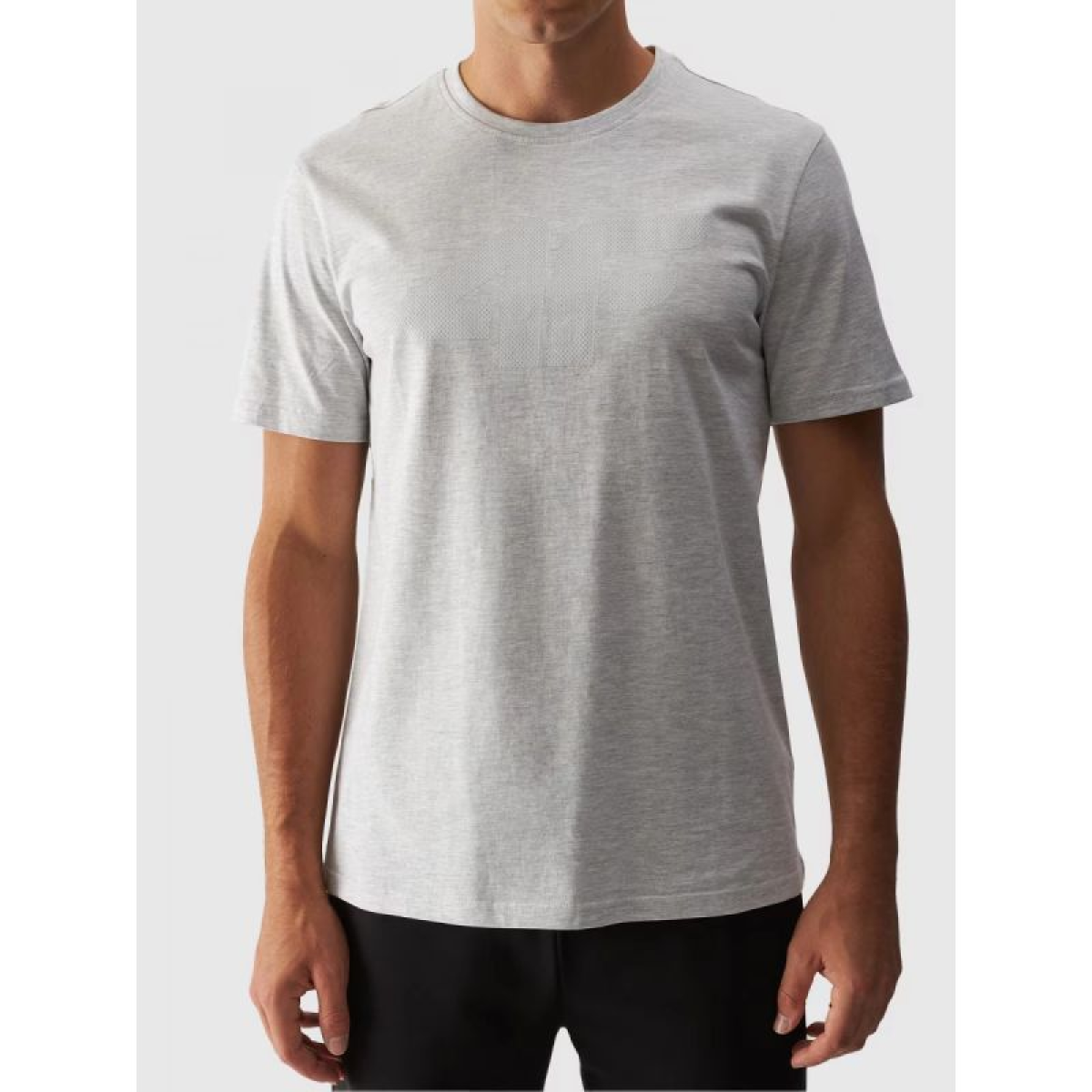 This men's short-sleeved T-shirt, with its 180 gsm weight, is soft to the touch and drapes well. It's non-sheer and provides durability and comfort for year-round wear. The 4F men's T-shirt is made of 100% cotton, making it soft, durable, and pleasant to the touch. The crew neckline is finished with a light ribbed trim. A 4F print is visible on the front.