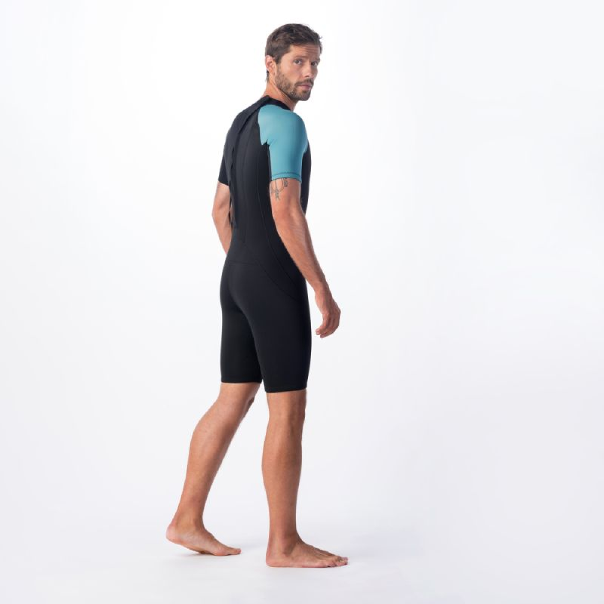 SURFING WETSUIT MATERIAL COMPOSITION: 2 mm, 90% NEOPRENE, 10% POLYESTER, 260 g/m2 SPECIFICATIONS: 3-LAYER LAMINATION YKK CHLORIDE RESISTANT ZIPPER