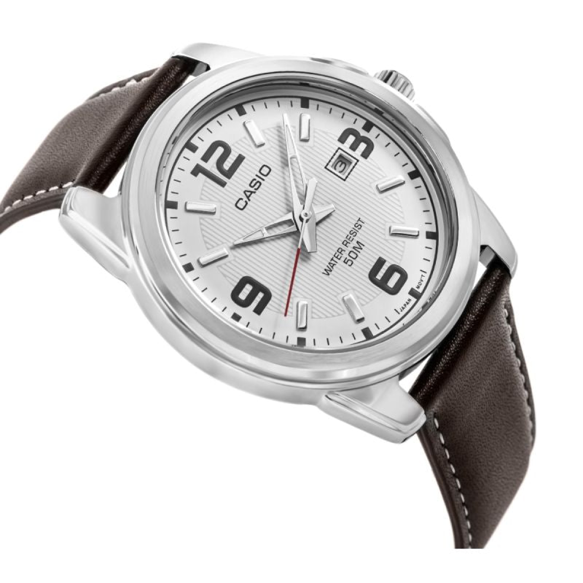 The Casio MTP-1314L-7AVDF is a watch that combines timeless elegance with everyday practicality. The distinctive silver case contrasts with a dark gray dial, where large, legible indices and a date display at 3 o'clock ensure easy reading in any situation, while the soft leather strap adds class and comfort. Mineral crystal protects the dial from damage, and 50m water resistance ensures the watch can withstand everyday wear with ease. This is an excellent choice for the man who values Casio's durability, the reliable precision of a quartz movement, and an elegant look that suits both work and after-hours meetings.