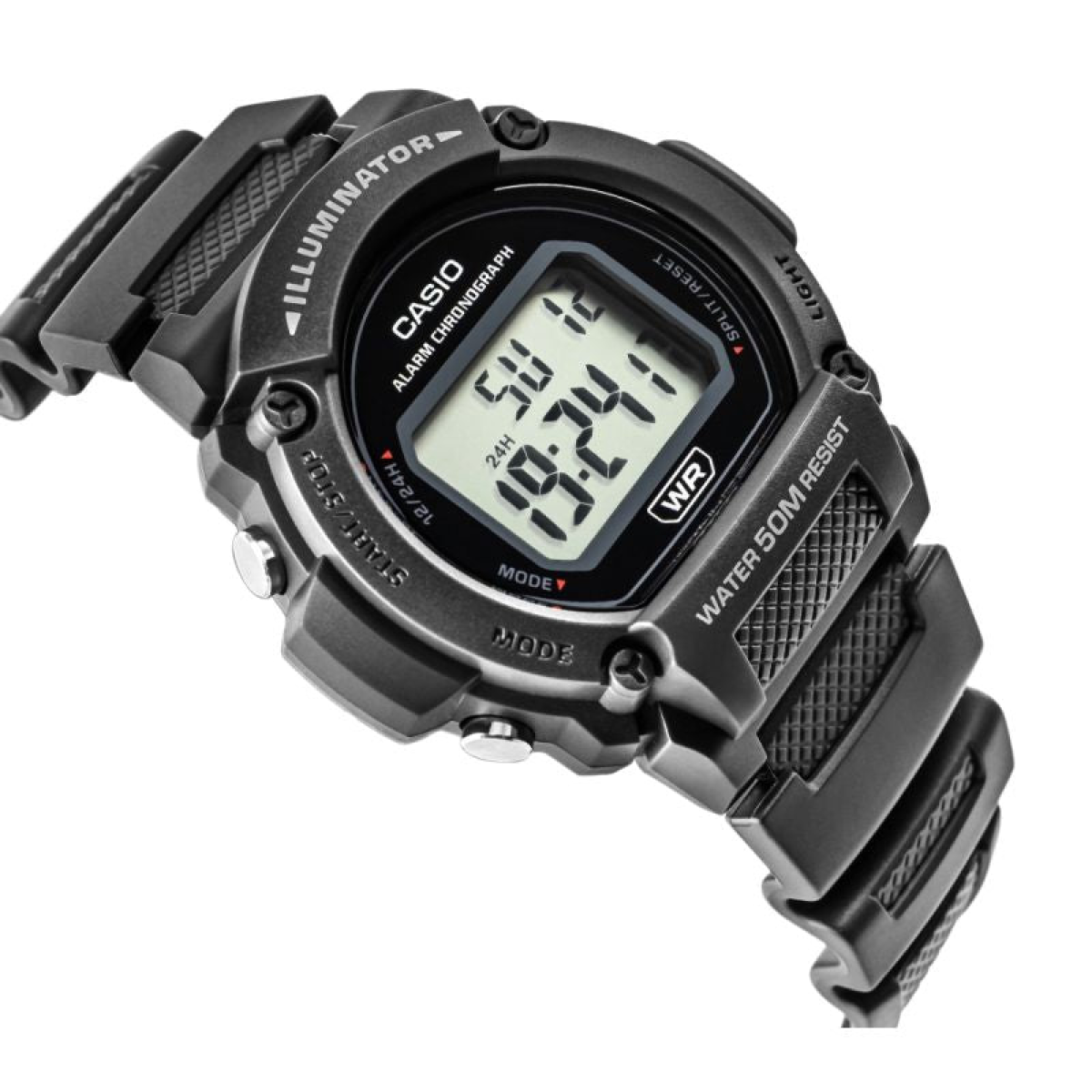 The Casio W-219H-1AVDF men's watch is a robust and reliable model with a sporty character, perfect for everyday wear. Equipped with a clear digital display, it provides easy reading of the time and functions, and its lightweight plastic casing makes it very comfortable to wear. Offering basic yet useful functions such as a stopwatch, alarm, hourly time signal, and backlight, the watch is perfect for everyday use, even after dark. It's water-resistant to 50 meters, sufficient for washing hands or contact with water in the rain. Its simple, sporty design complements both everyday and more casual outfits. This model is valued for its durability, reliability, and excellent value for money. This watch is for men who value practicality, classic style, and functionality without unnecessary frills—simply a watch that always works and looks good.