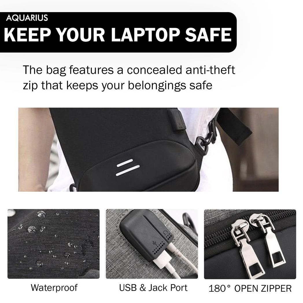 Aquarius Waterproof Anti-Theft Backpack with USB Charging Port Unisex Small Bag Whether you’re looking for a great laptop bag for work or you need a lunch bag for school, an anti-theft bag is a great choice. The concealed zip keeps all of your belongings safely out of reach of would-be thieves, and the included USB charging port makes it super simple to charge up your phone, laptop, tablet, or any other device while on the go. All you need to do is slot a power bank (not included) into the bag and connect it to the port. Made from rugged canvas that wears well while staying super breathable, with reflective bands to keep you safe while crossing the street at night, your bag always has your back no matter where you’re going. There are six different internal storage pockets, making it easy to keep things organized too. Whether you’re travelling ANTI-THEFT: Keep your belongings safe and secure while travelling with the Aquarius Anti-Theft Backpack. It comes equipped with 3 anti-theft compartments. The main section at the front comes with a TSA lock, ensuring that no one has access to your backpack apart from you. The main body of the backpack has fully hidden zips beneath the fabric making it secure from pickpocketers and the internal security belt helps prevent items like a laptop or iPad from moving and getting damaged. Lastly there ORGANISED AND SECURE: Equipped with a variety of functional pockets and sleeves, the Aquarius Anti-Theft Backpack has a deceivingly large capacity. It is ideal for storing laptops, tablets, books, phones, power banks, wallets, pens and pencils, keys, and much more. Features: Anti-theft zip opening Reflective bands Good breathability and 2cm elasticity on the back Shoulder strap with S-shaped ergonomic design USB charging port Six inside pockets Internal material: polyester. Box Contains: Aquarius Small AntiTheft Backpack with USB Charging Port (Select Your Colour From Dropdown)